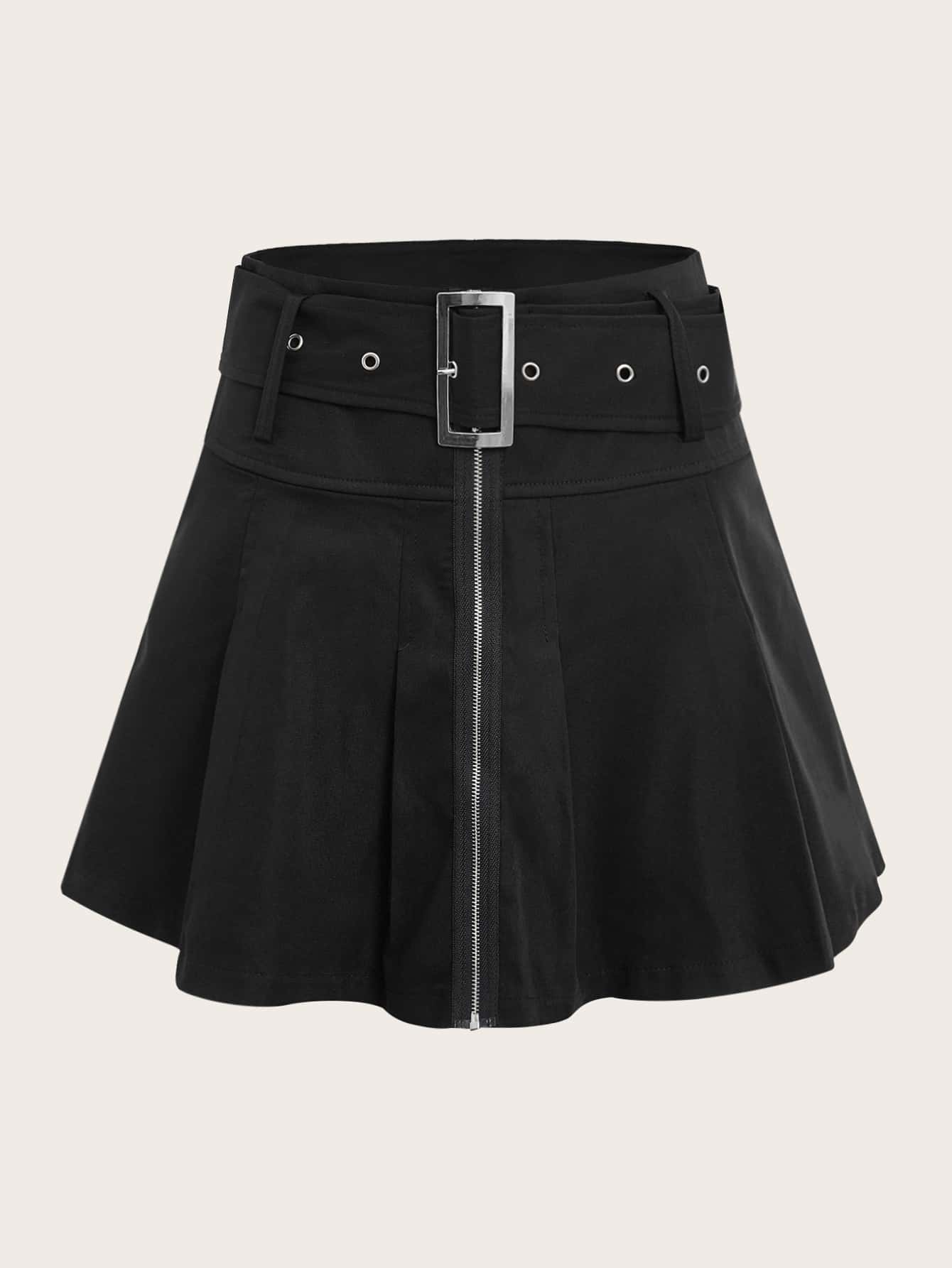 Zip Up Belted Skirt