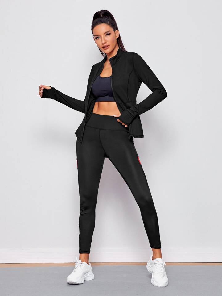Zip Up Pocket Side Sports Jacket With Thumb Holes
