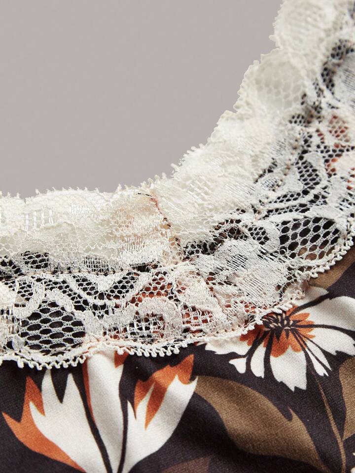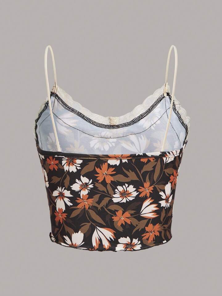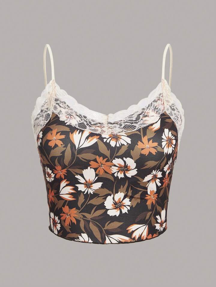 wecouldallbe Floral Print Contrast Lace Cami Top