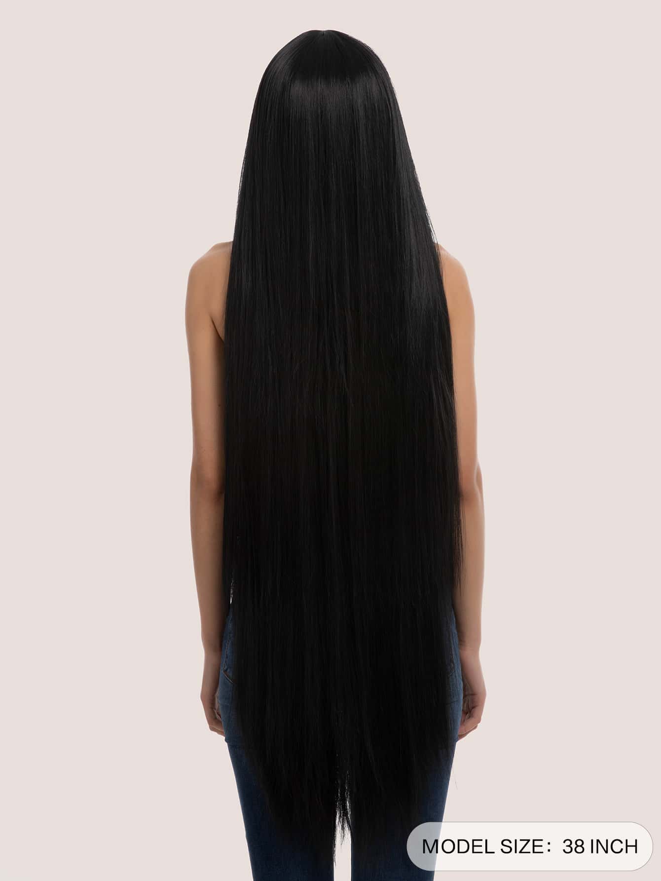 1 Meter Black Natural Long Straight Hair Fake With Bangs Synthetic Female Wig, Suitable For Everyday Use, Halloween Wig Parties And Festive Wear