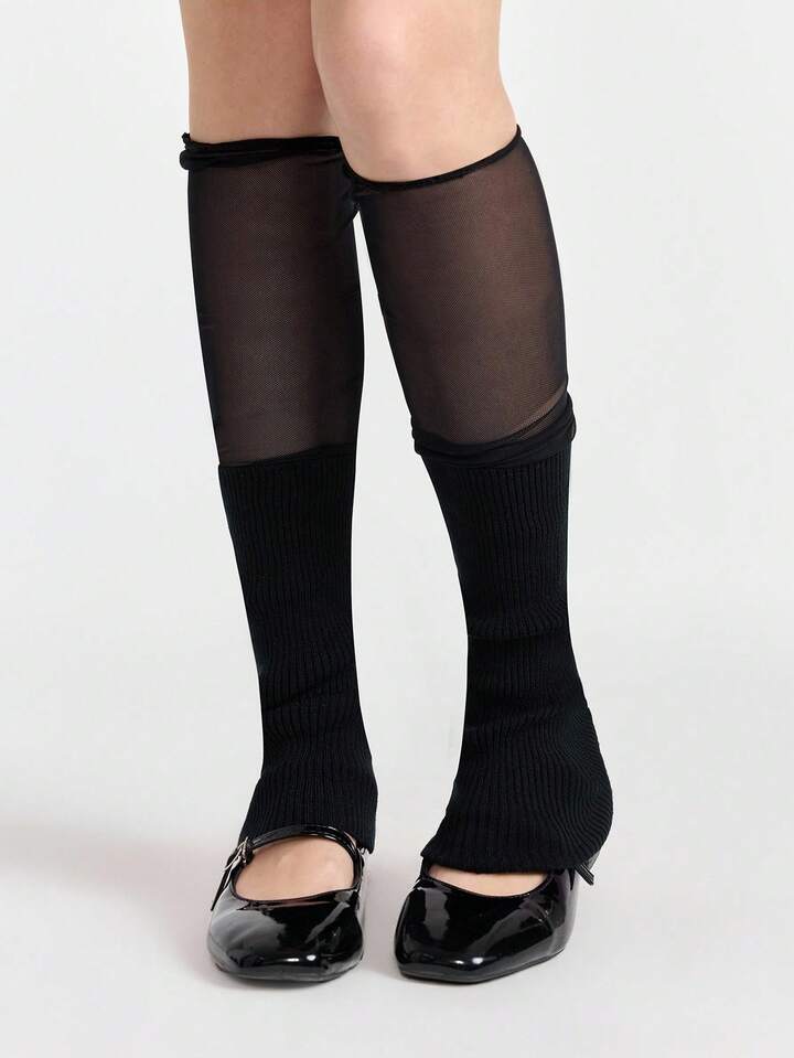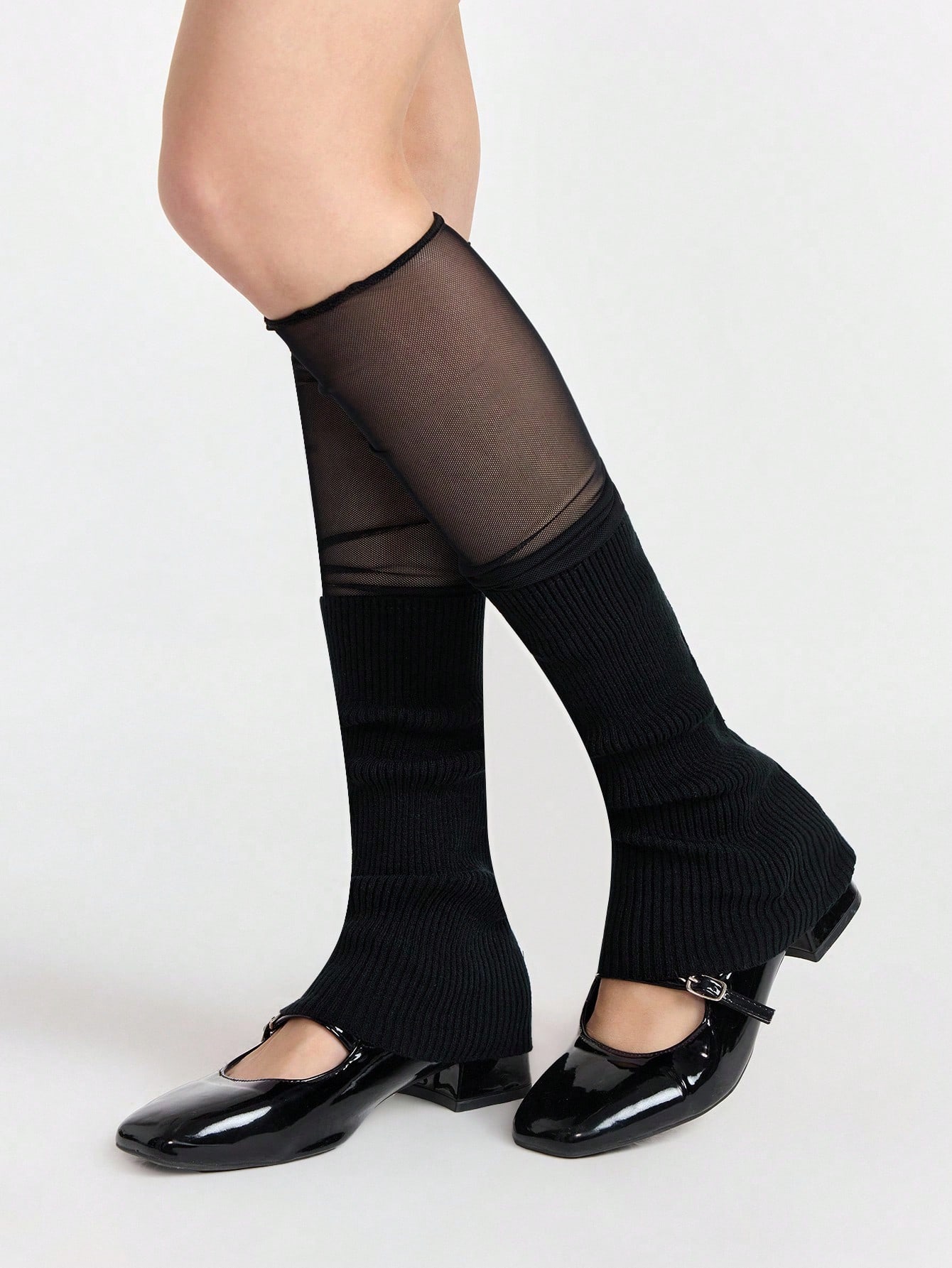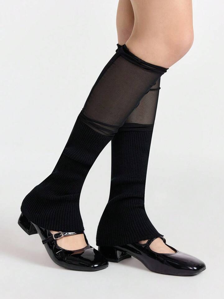 1 Pair Ballet-Style Knit Patchwork Leg Warmers, Y2K Lace Ruffle Leg Warmers, Versatile School Style Leg Warmers