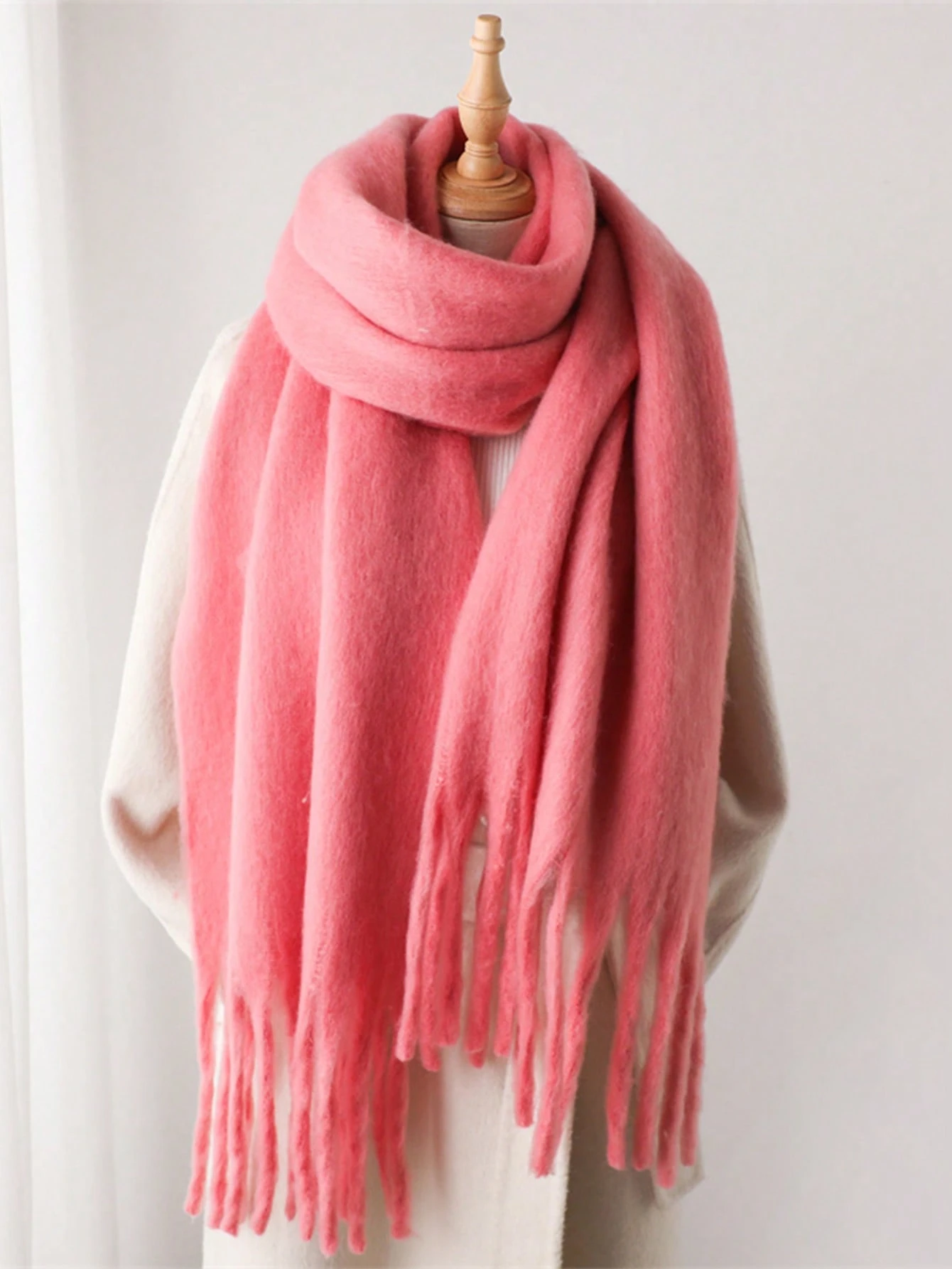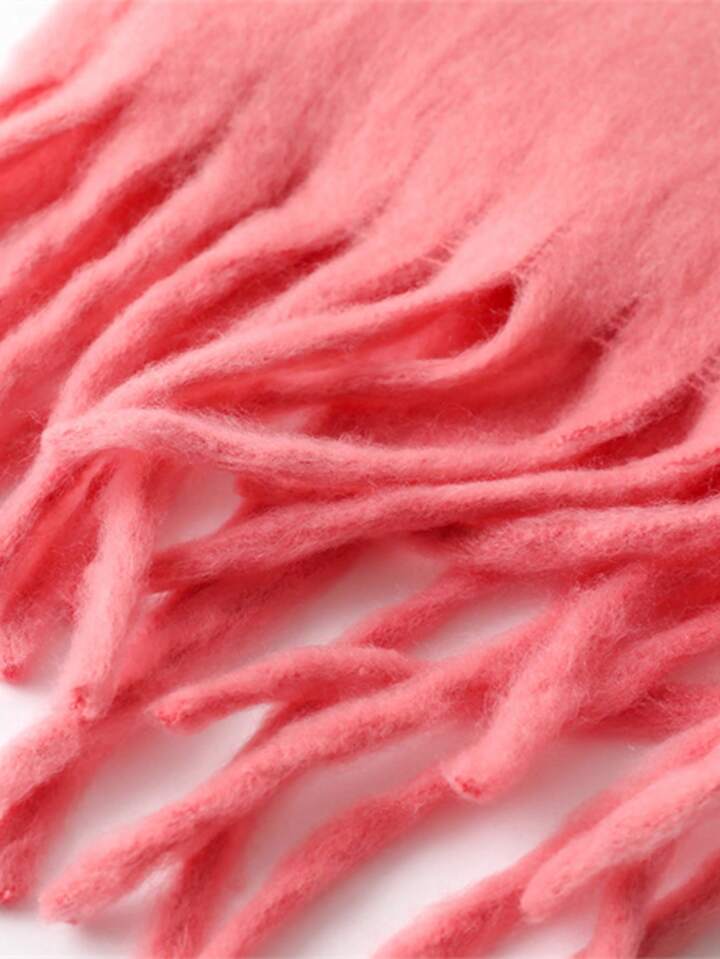 1 Pc Women Winter Scarf Horsehair Black Imitate Cashmere Shawls And Wraps Thick Warm Lady's Fashion Solid Colors Tassel Pull Plush Scarves Outdoor Women Shawl