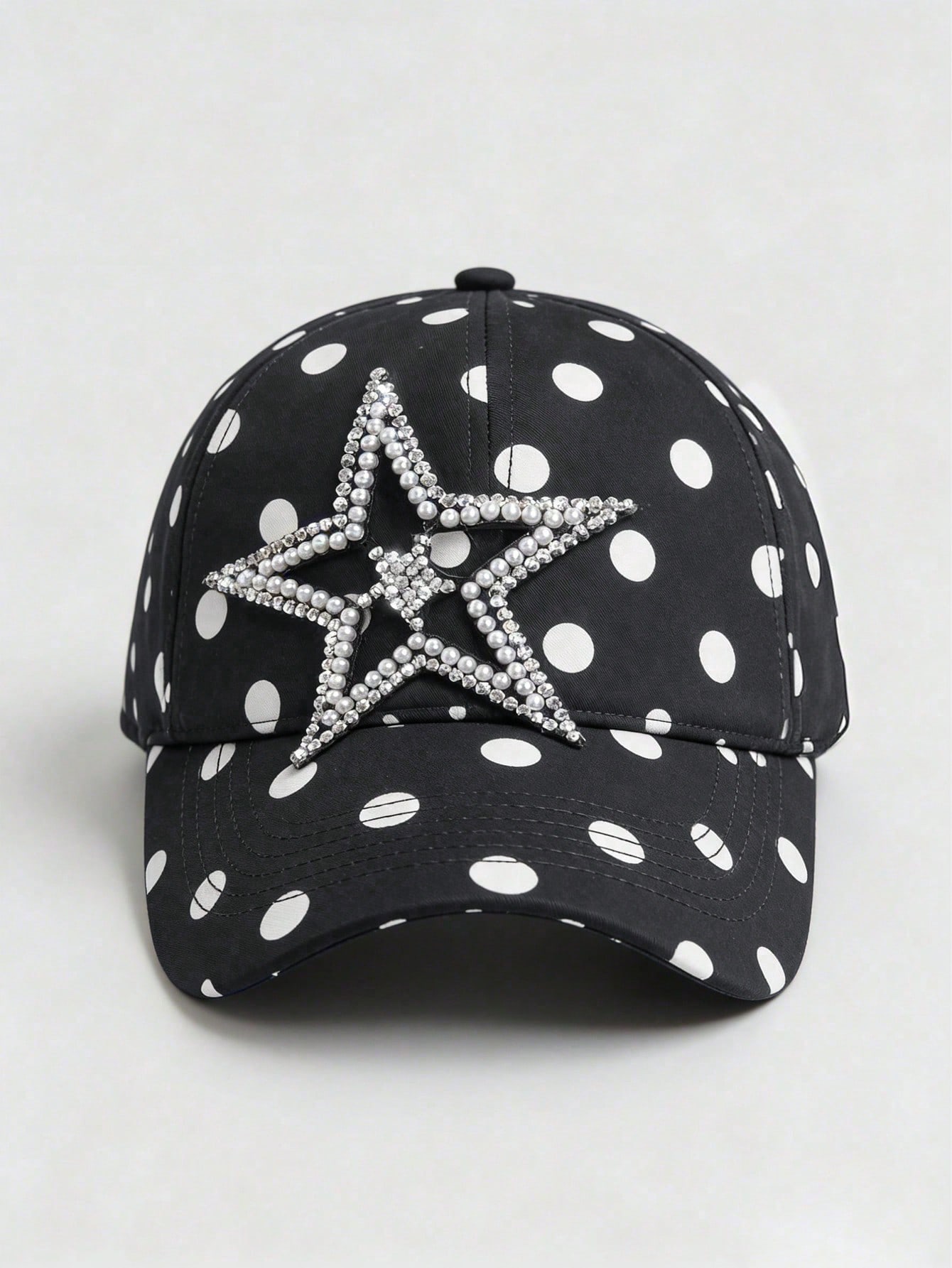 1 Star Pattern Diamond-Encrusted Baseball Cap, Y2K Style Polka Dot Element Hat, Adjustable Buckle At The Back, Daily Personalized Fashion Items