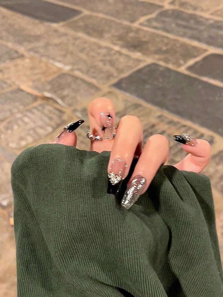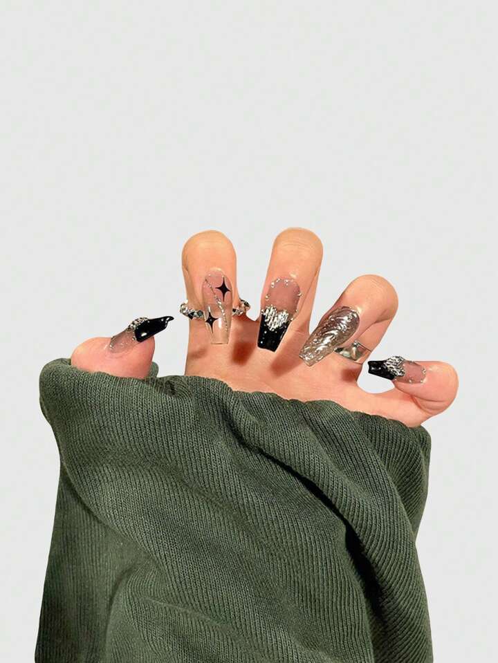 10pcs Coffin 3D Heart Decor Fake Nail & 1sheet Tape