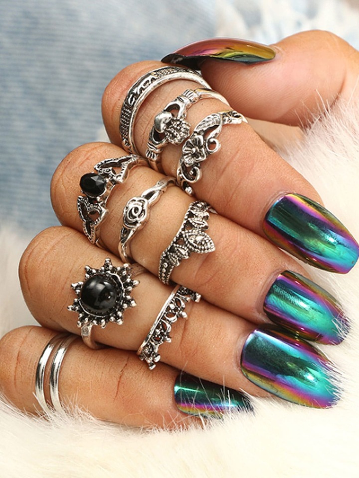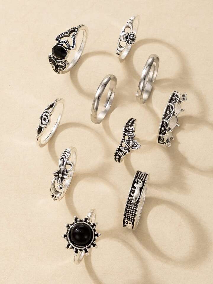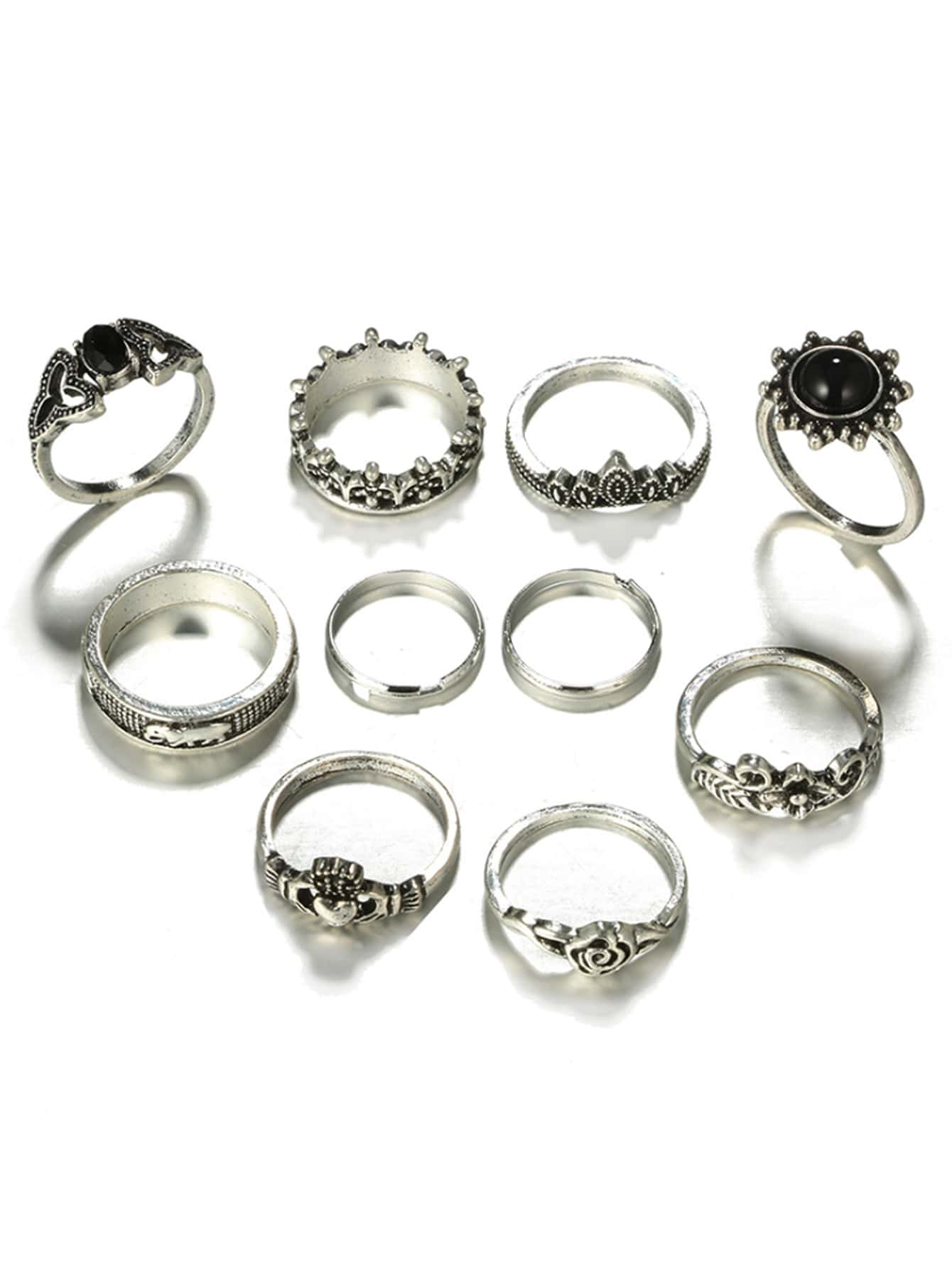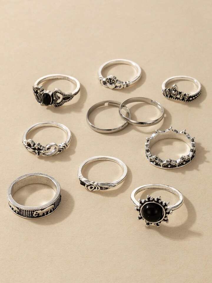 10pcs Flower Engraved Ring