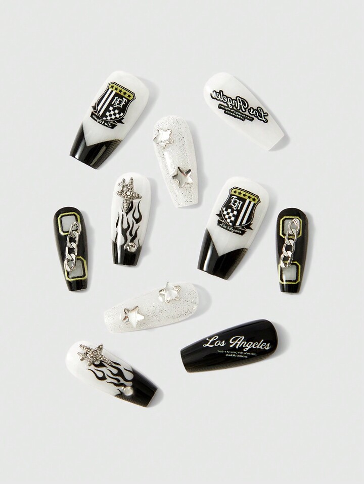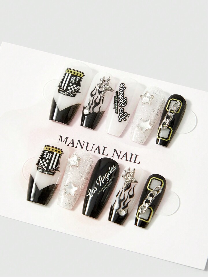 10pcs Long Artificial Nails, Handmade & Reusable, With Jelly Glue Included
