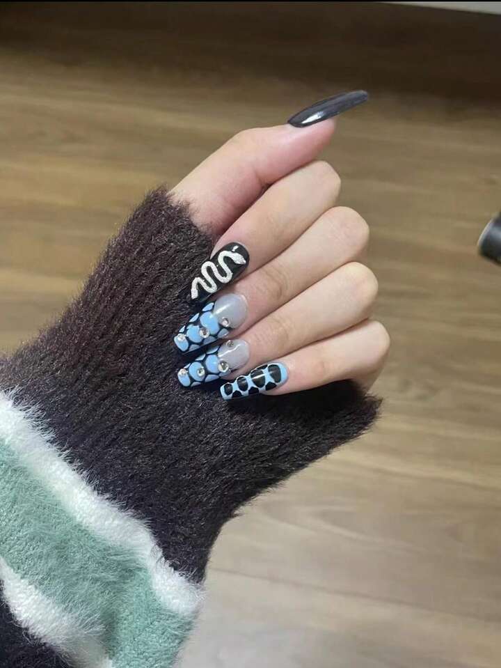 10pcs Long Coffin 3D Snake Decor Fake Nail & 1sheet Tape