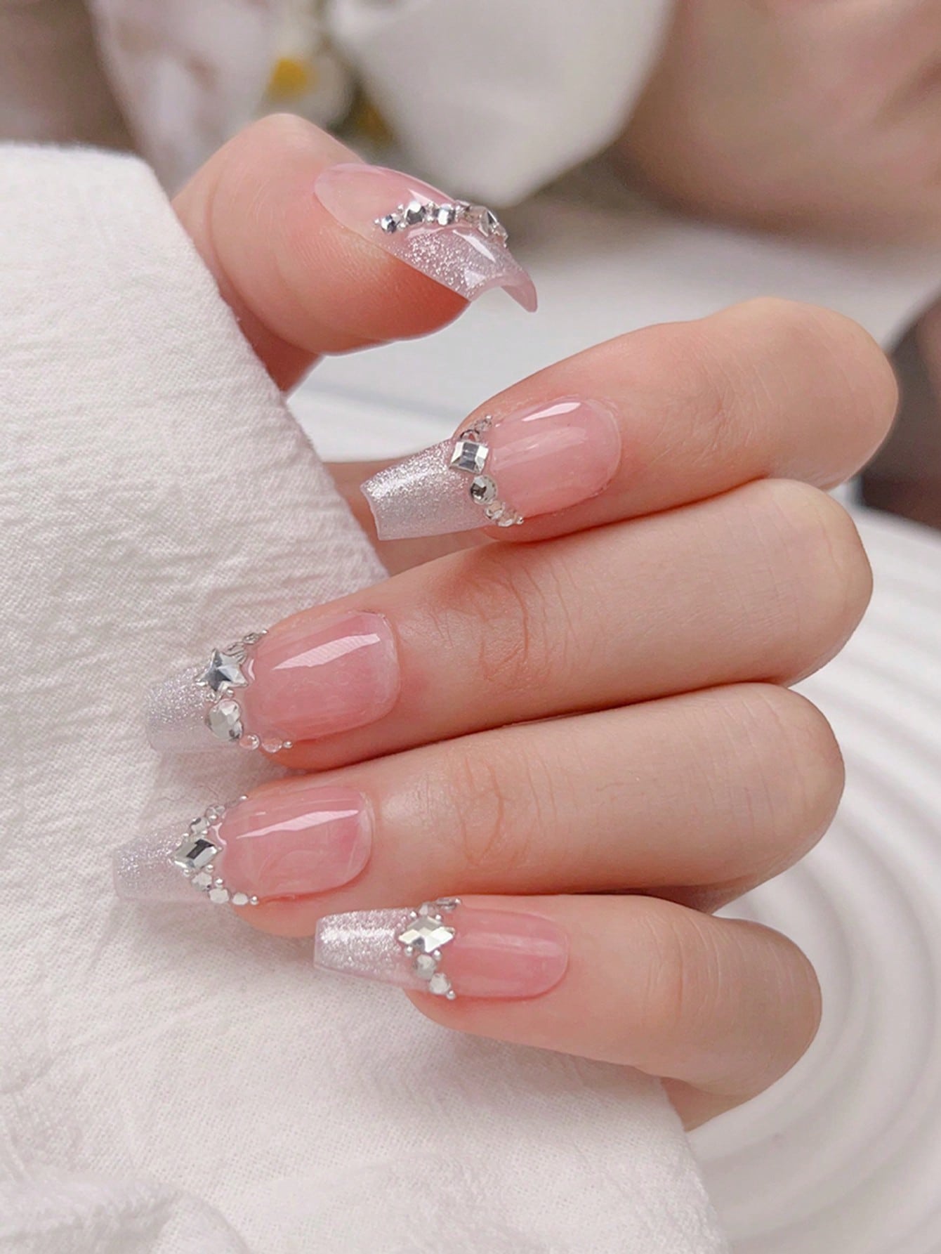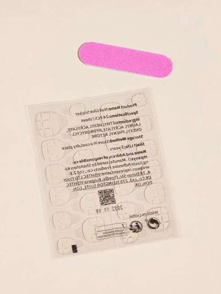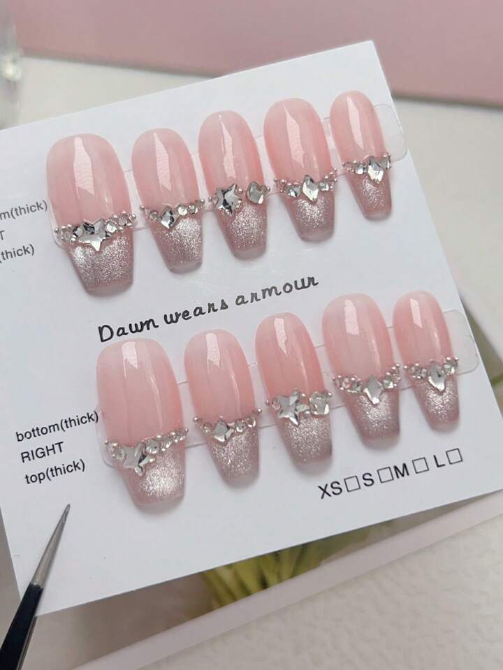 10pcs Long Coffin Rhinestone Decor Glitter Fake Nail & 1pc Nail File & 1sheet Tape