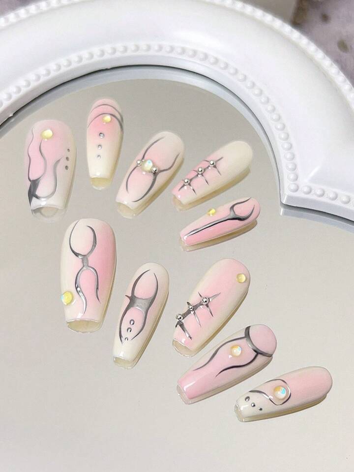 10pcs Long Coffin Spider Pattern Fake Nail Kit