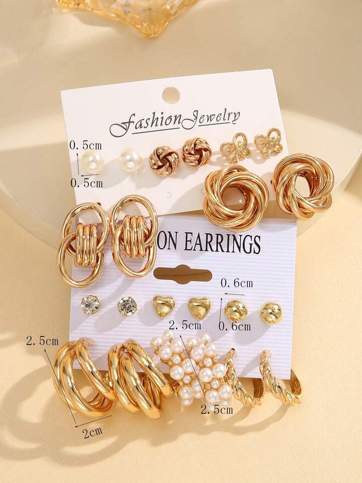11pairs Fashion Faux Pearl & Rhinestone Decor Earrings For Women For Daily Decoration