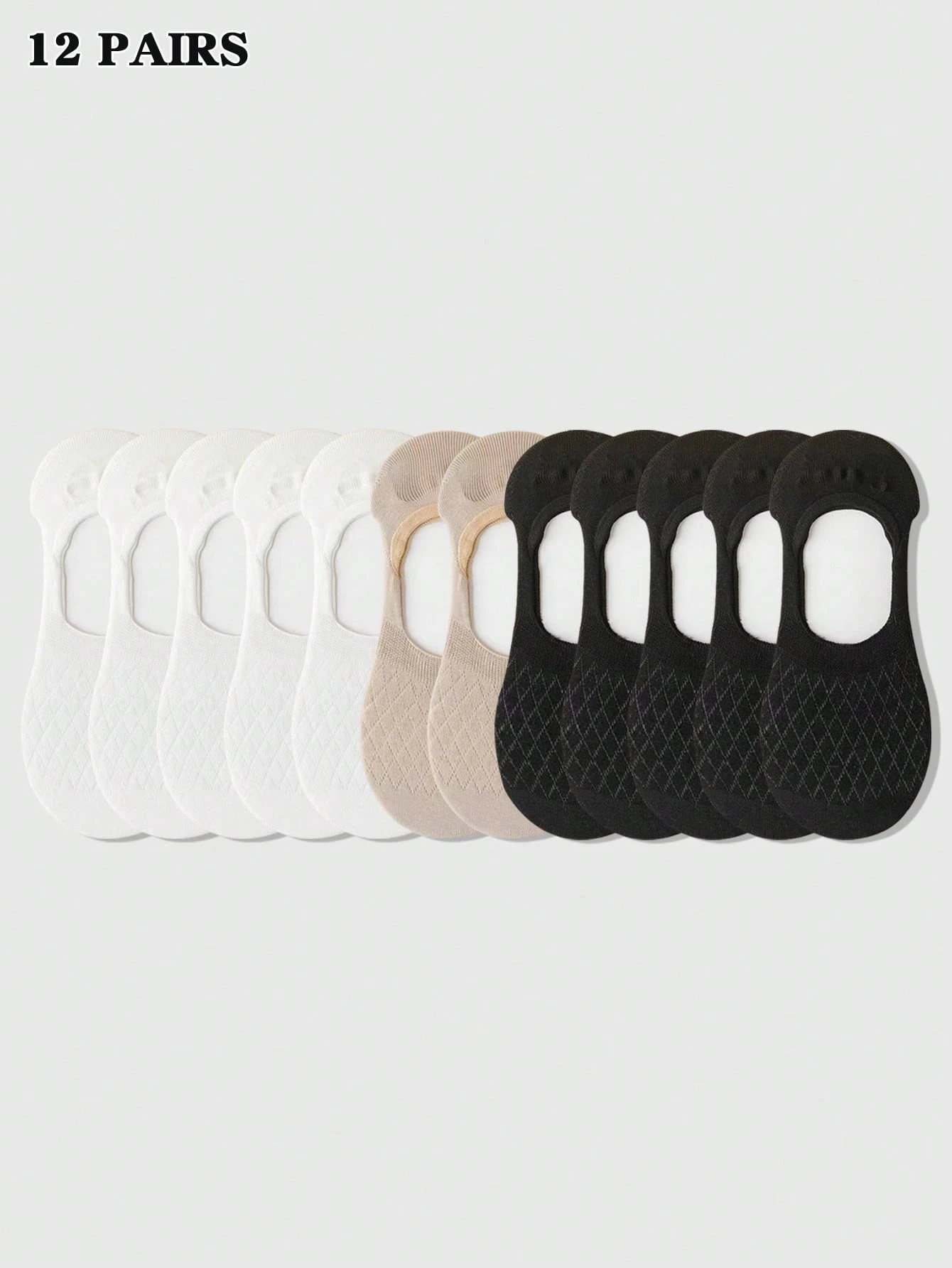 12 Pairs Women's Solid Color Invisible Socks With Silicone Heel Grip, Casual Loafer Socks, Fashionable And Versatile For Spring/Summer