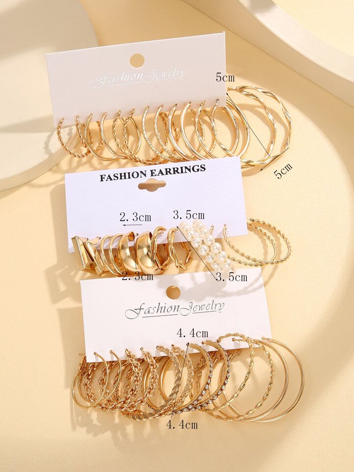 18pairs Fashion Zinc Alloy Rhinestone & Faux Pearl Decor Earrings For Women For Daily Decoration