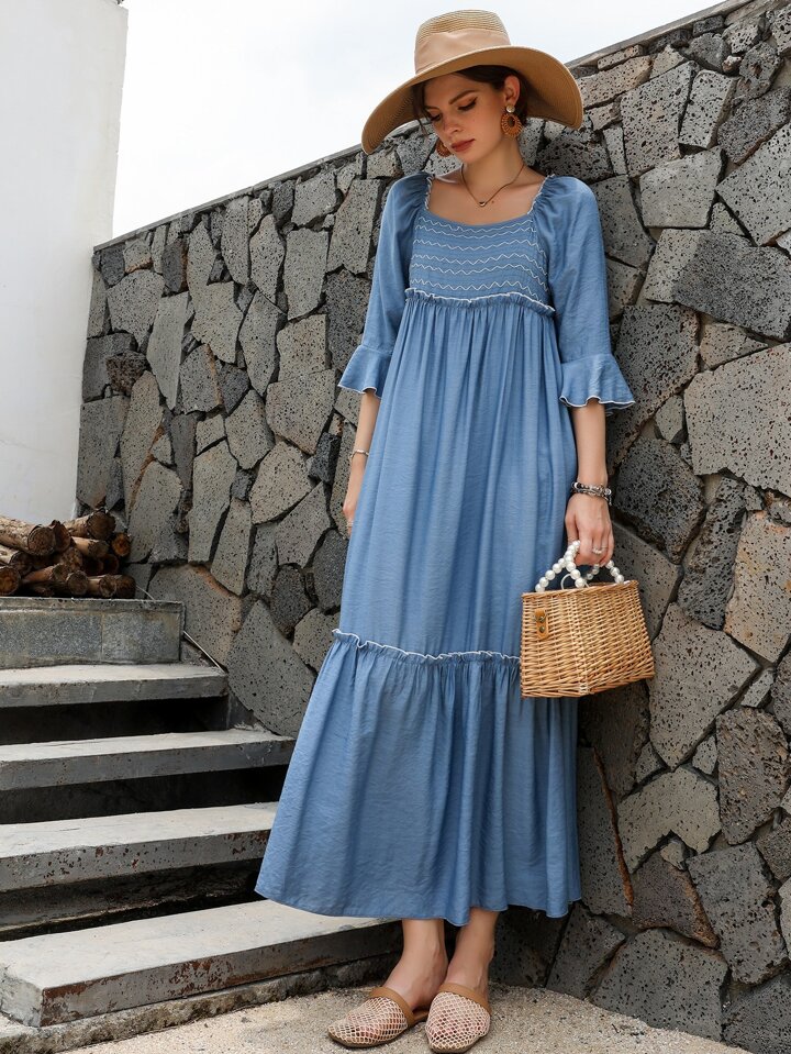 1Pc Lettuce Trim Flounce Sleeve Smock Dress