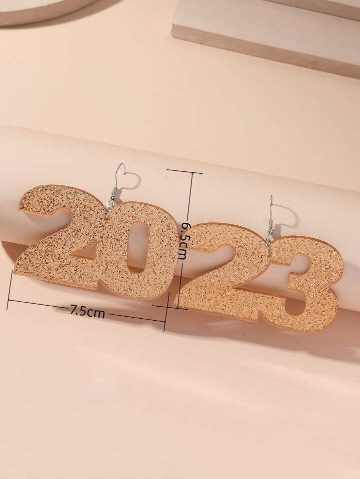 1pair Fashion Glitter Birthday Year Number Mismatched Drop Earrings For Women For Daily Decoration