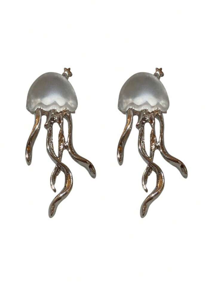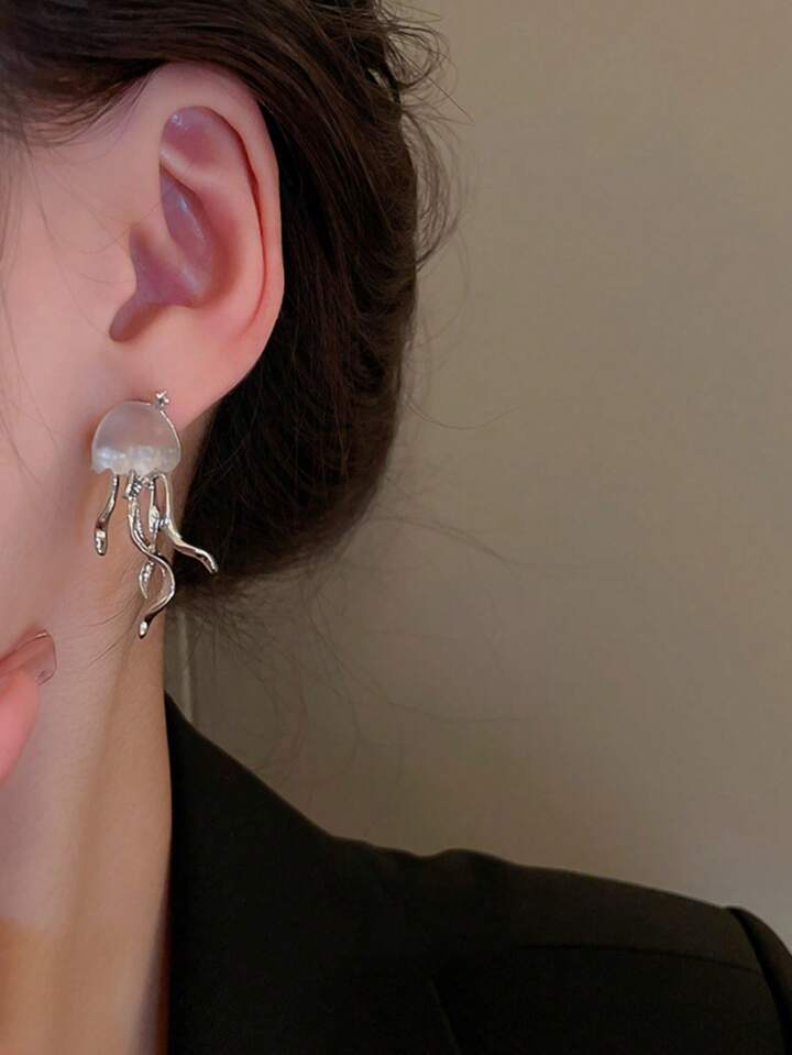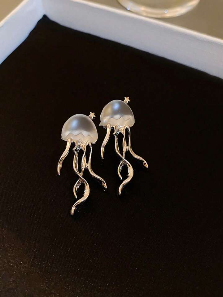 1pair Fashion Zinc Alloy Cubic Zirconia Decor Jellyfish Stud Earrings For Women For Gift