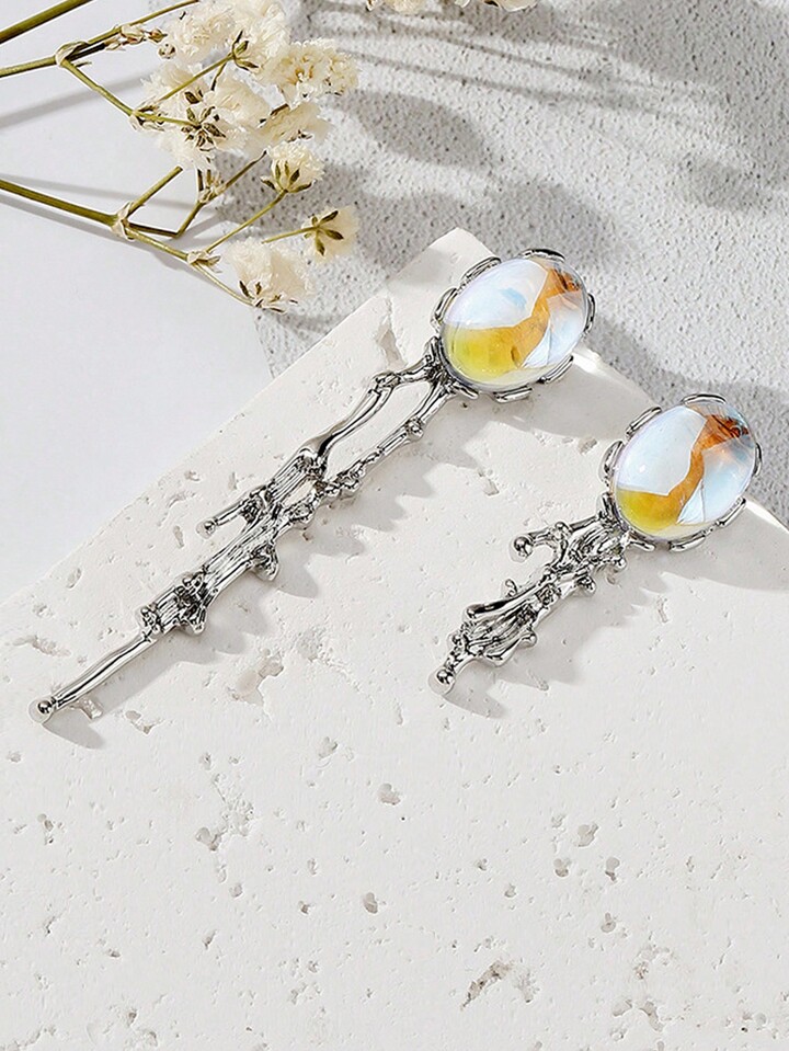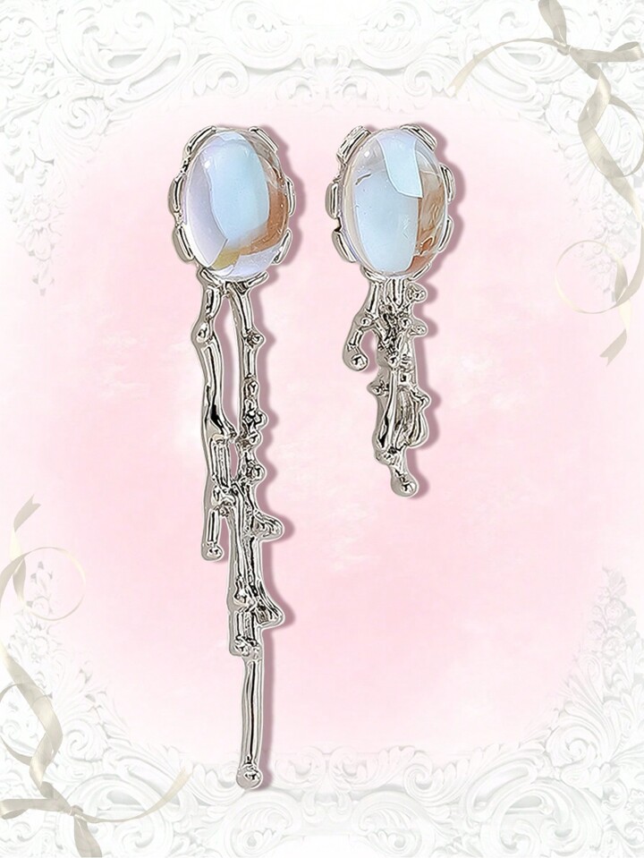 1pair Fashion Zinc Alloy Moonlight Stone Decor Earrings For Women For Daily Decoration