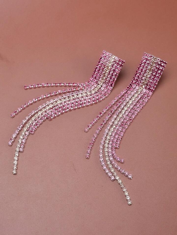 1pair Fashionable Rhinestone Tassel Earrings For Women, Suitable For Daily Wear Or Holidays