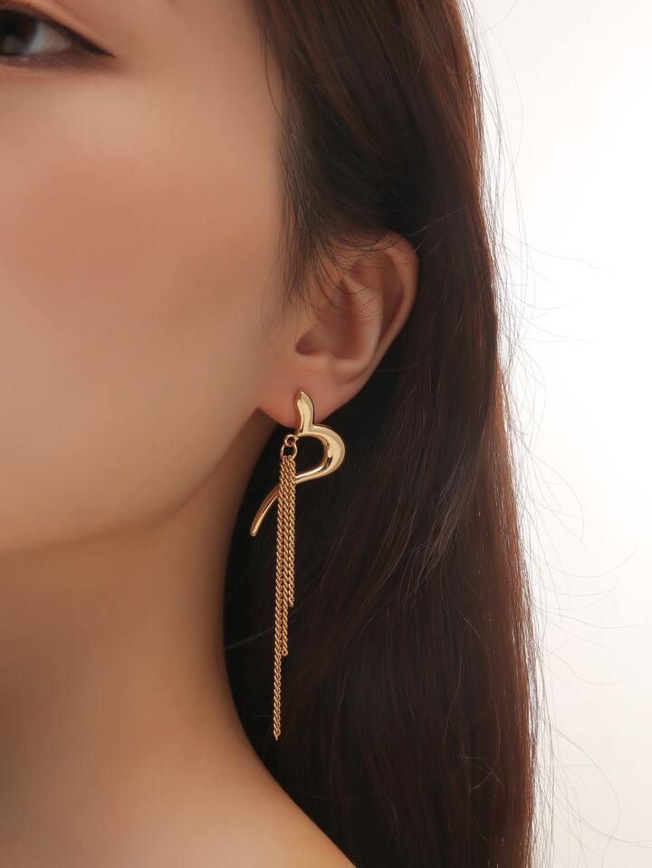1pair Fashionable Zinc Alloy Chain Tassel Drop Earrings For Women For Daily Decoration