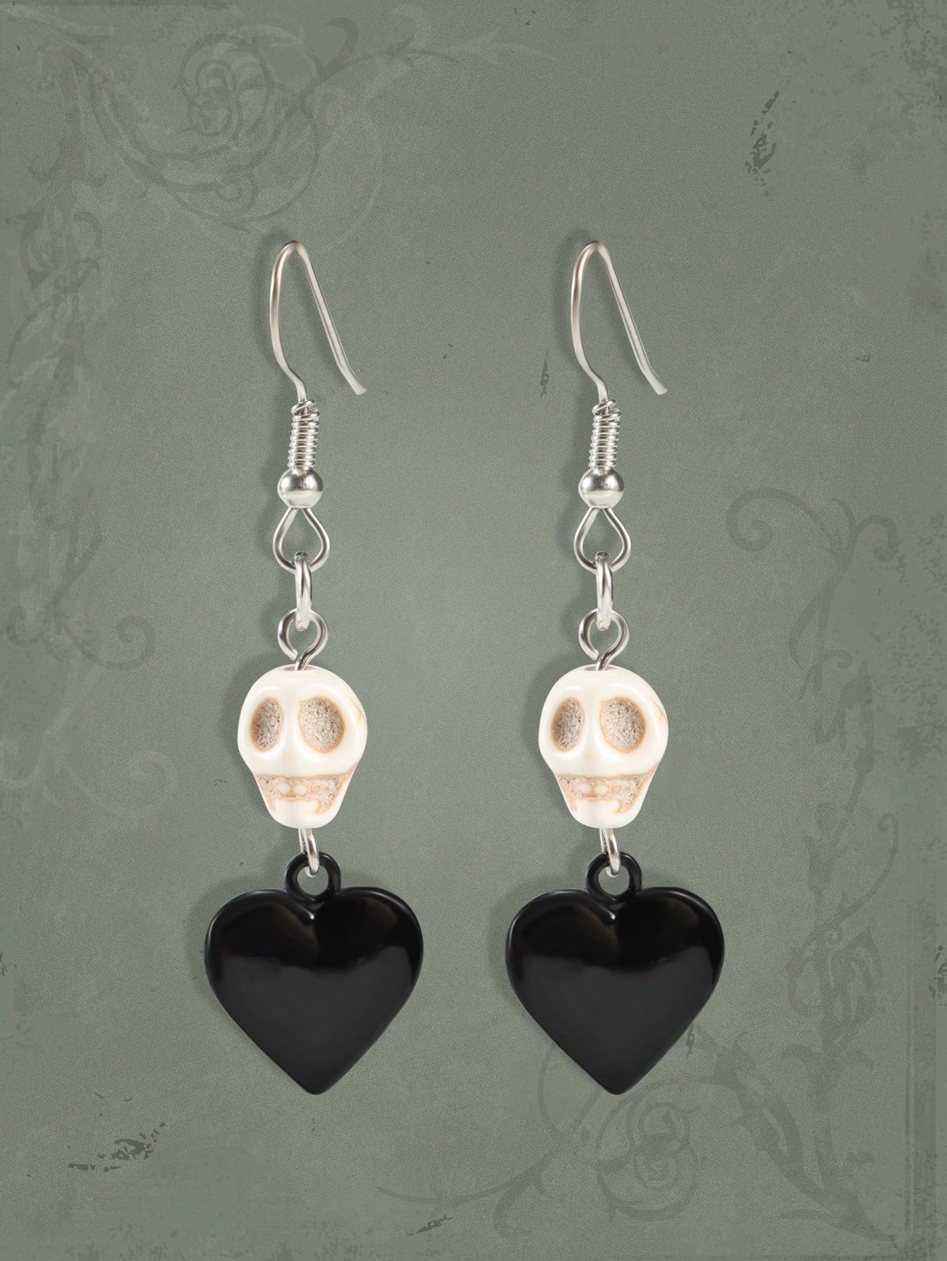 1pair Funky Skull & Heart Drop Earrings For Women For Daily Decoration