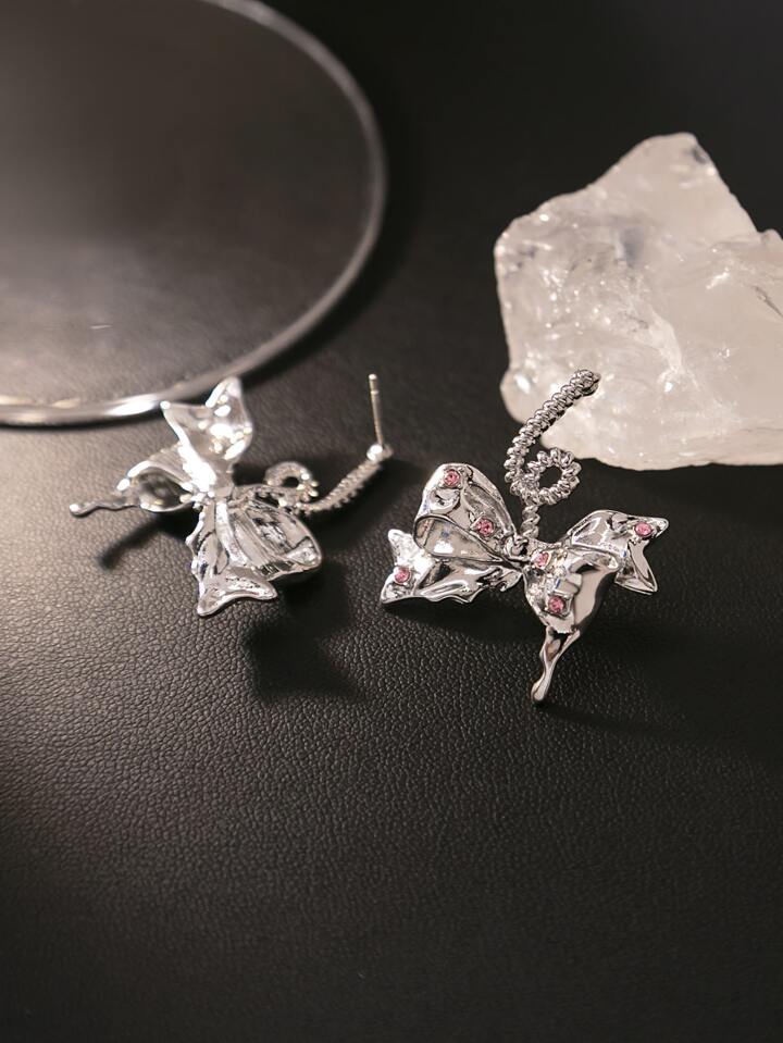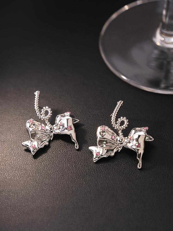 1pair Glamorous Zinc Alloy Bow & Rhinestone Decor Earrings For Women For Daily Decoration
