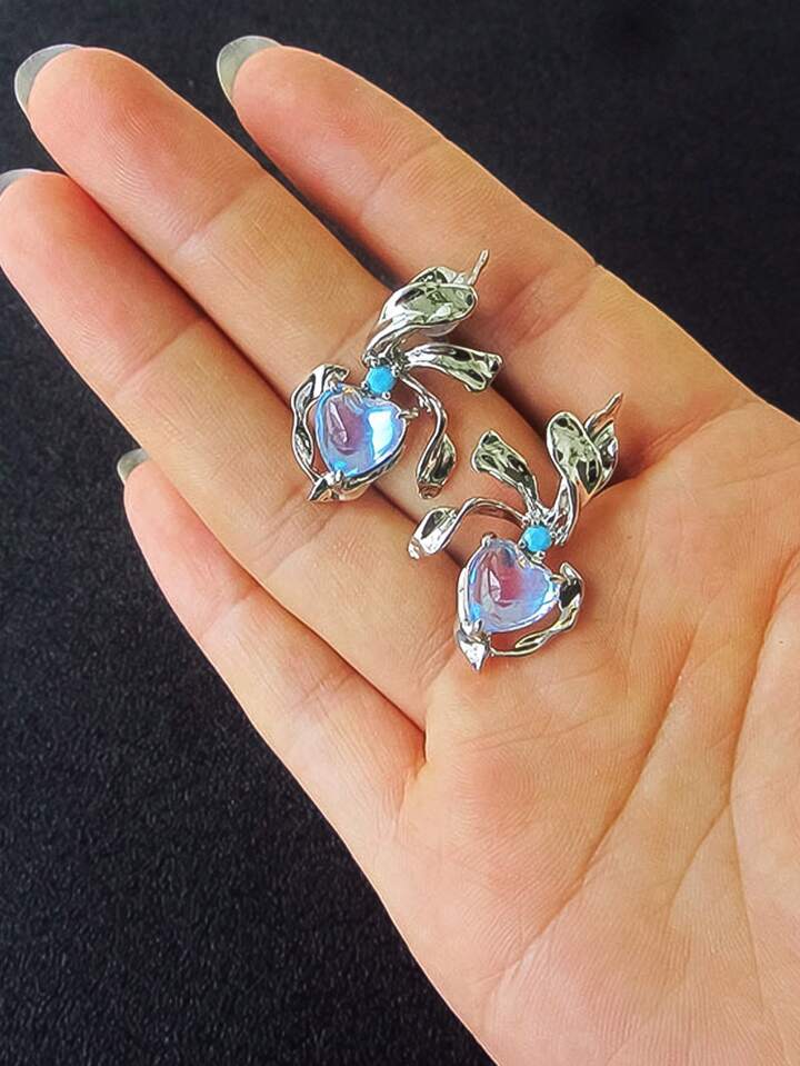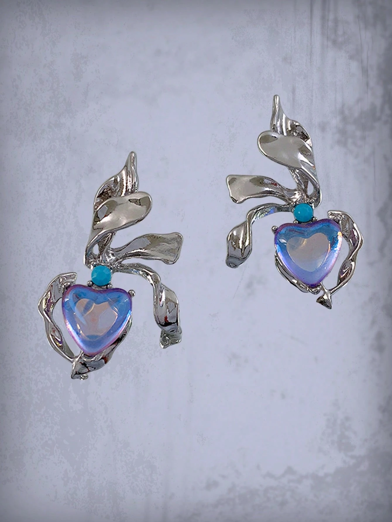 1pair Glamorous Zinc Alloy Heart Rhinestone Decor Earrings For Women For Dating Gift