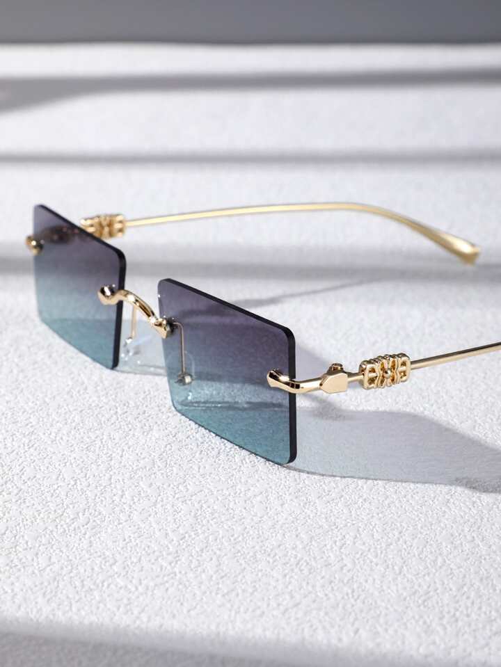 1pair Men Square Rimless Fashionable Fashion Glasses, For Decoration