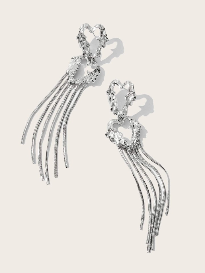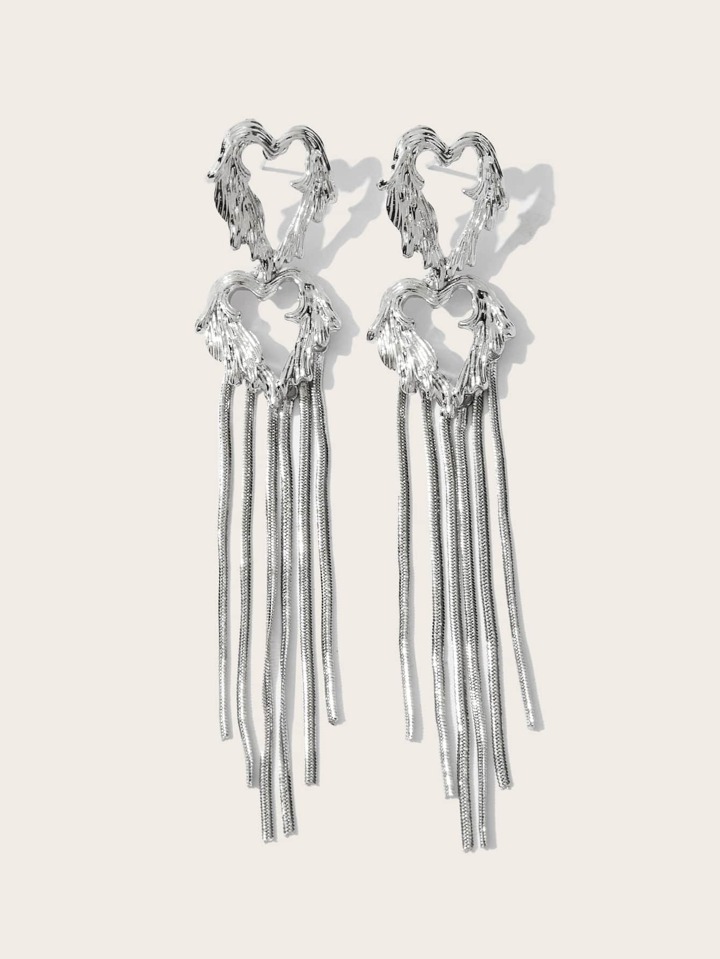 1pair Punk Zinc Alloy Heart & Metal Tassel Drop Earrings For Women For Daily Life