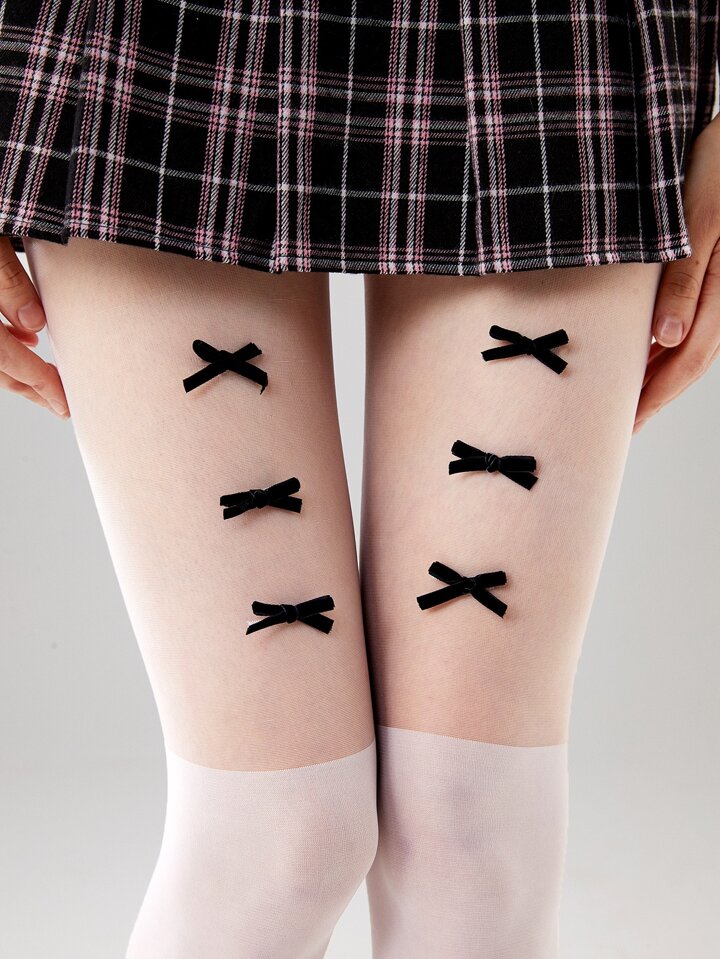 1pair Women Bow Decor Fashion Tights For Daily Life
