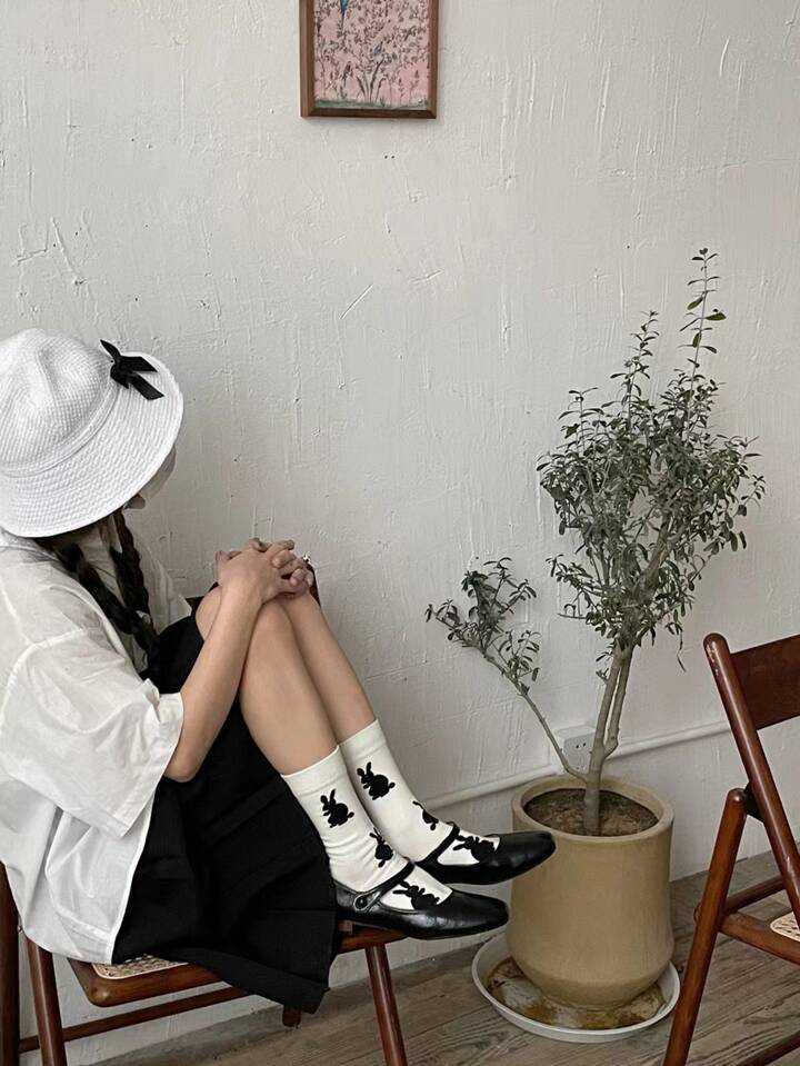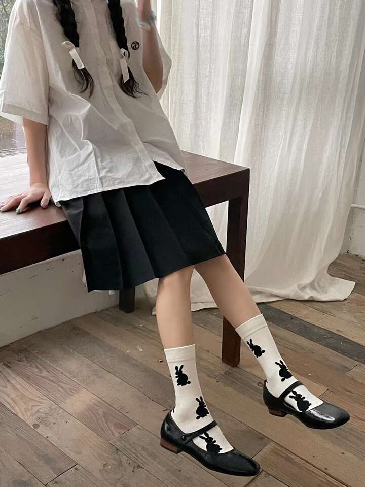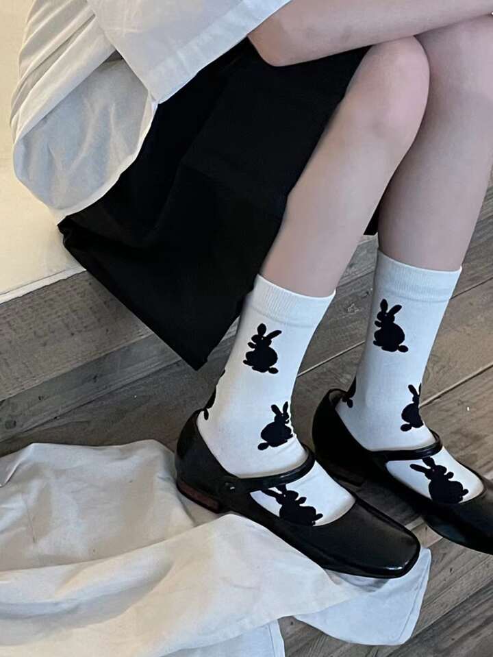 1pair Women Rabbit Pattern Crew Socks For Daily Life