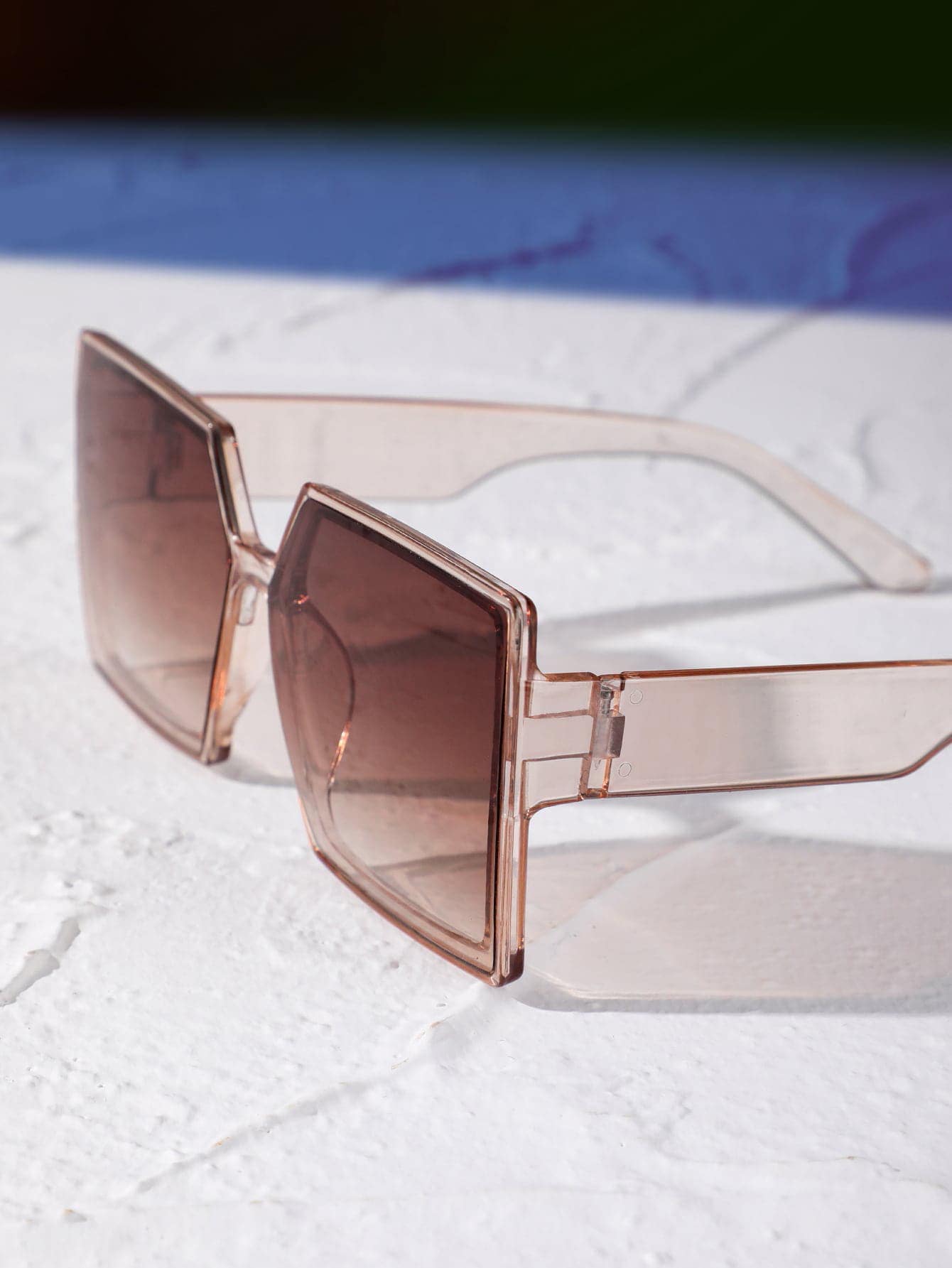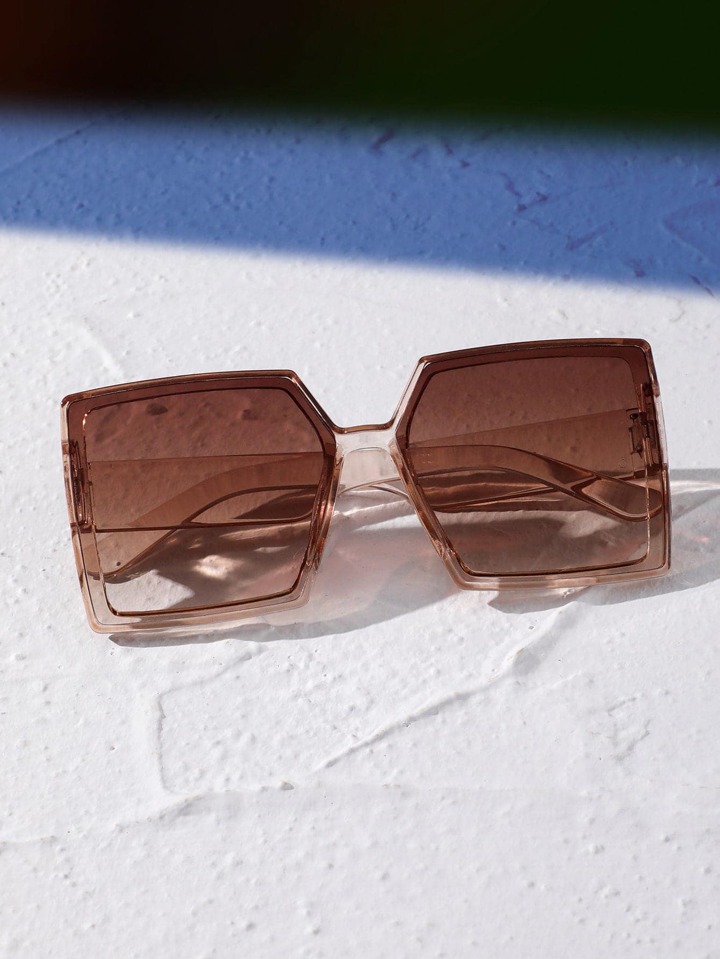 1pair Women Square Frame Tinted Lens Boho Fashion Glasses, For Outdoor Travel
