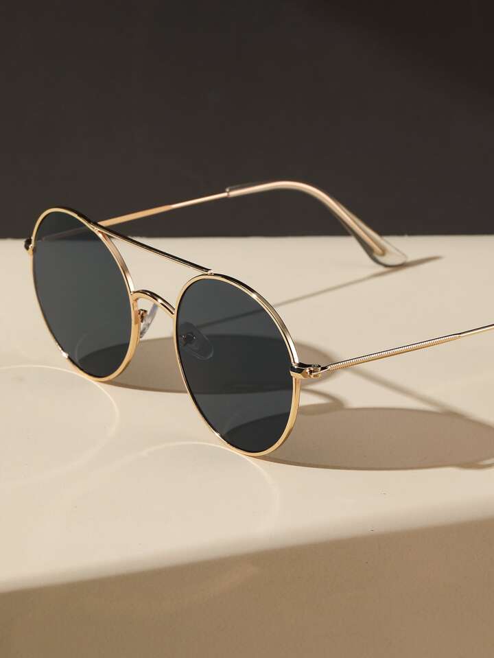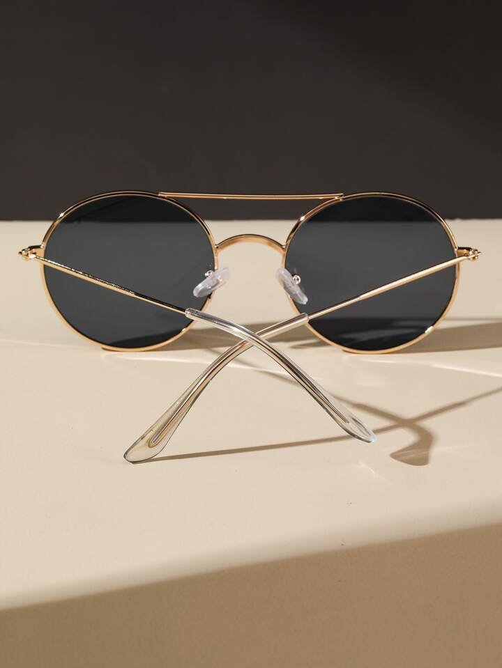 1pair Women Top Bar Metal Round Frame Fashion Glasses For Outdoor