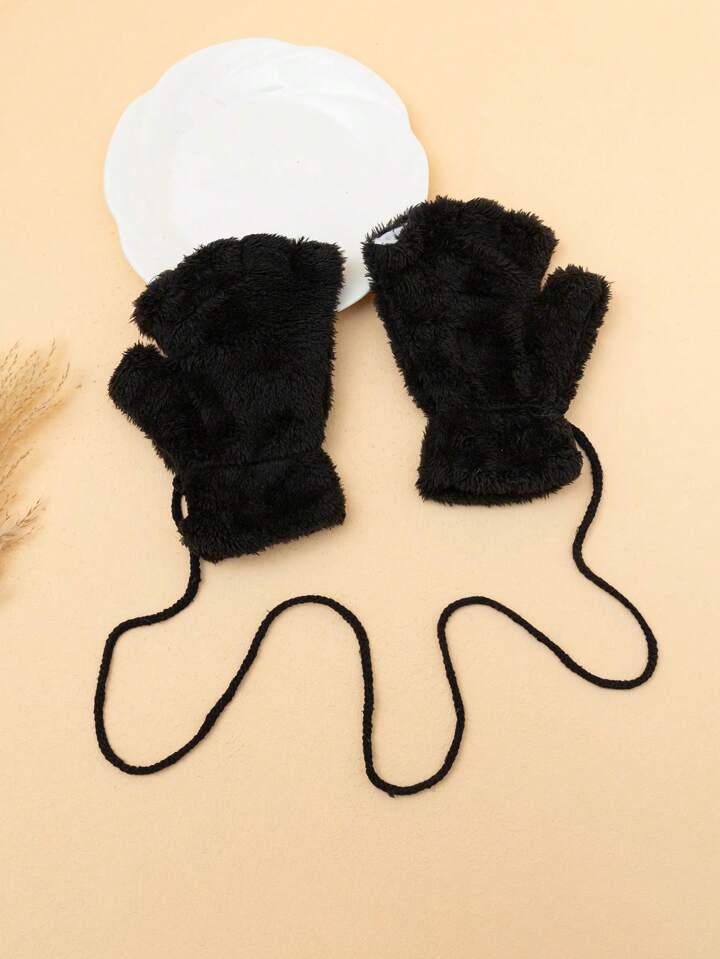 1pair Women's Mismatched Color Cute Plush Cat Paw Gloves With Neck Hanging And Fingerless Design For Warmth, Suitable For Outdoor Cycling And Skiing
