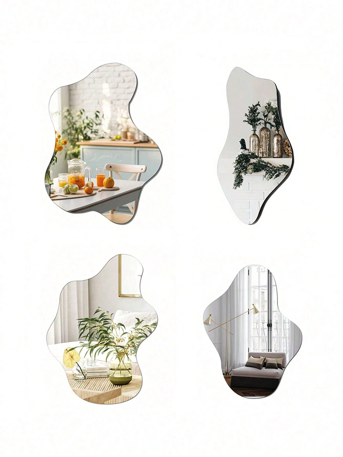 1pc Asymmetrical Shaped Mirror Decoration Wall Sticker, 2mm Thick Acrylic Material Decorative Mirror Sticker, Suitable For Bedroom, Living Room, Bathroom, Kitchen. Best Gifts Birthday Graduation