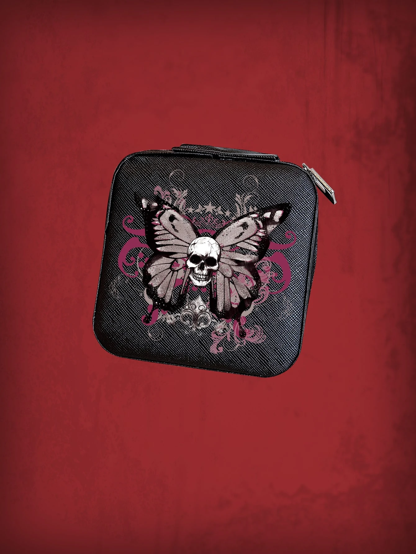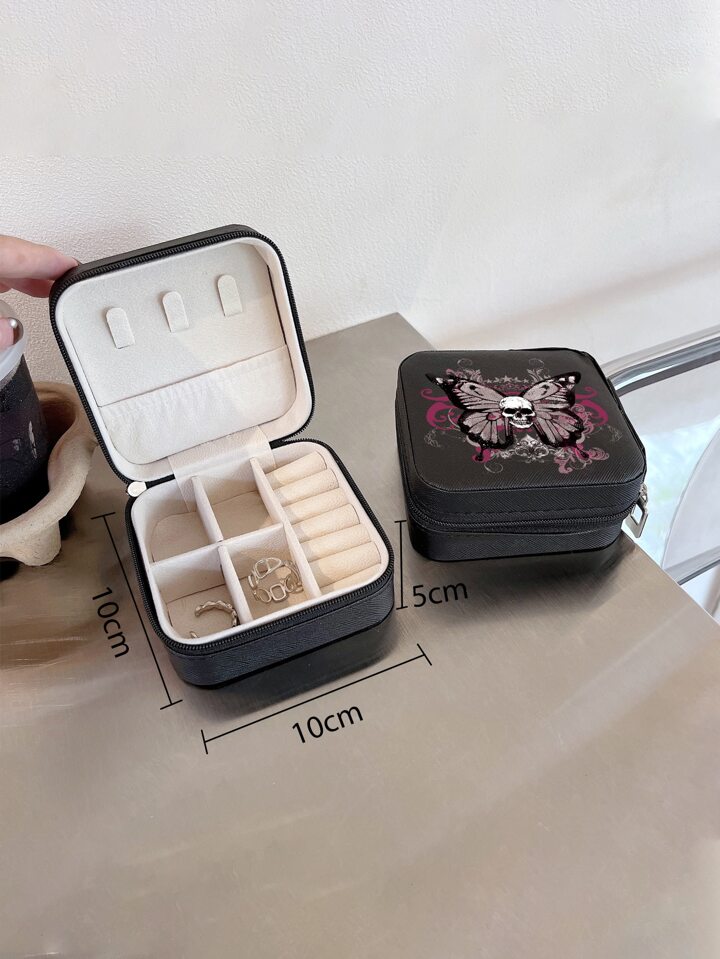 1pc Butterfly & Skeleton Print Jewelry Box, Modern Square Shaped Jewelry Storage Box For Travel, Home