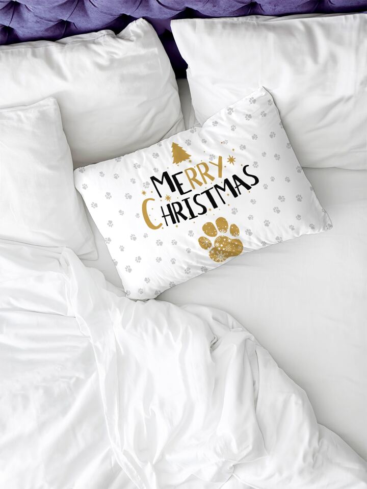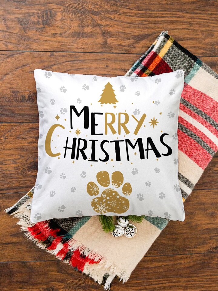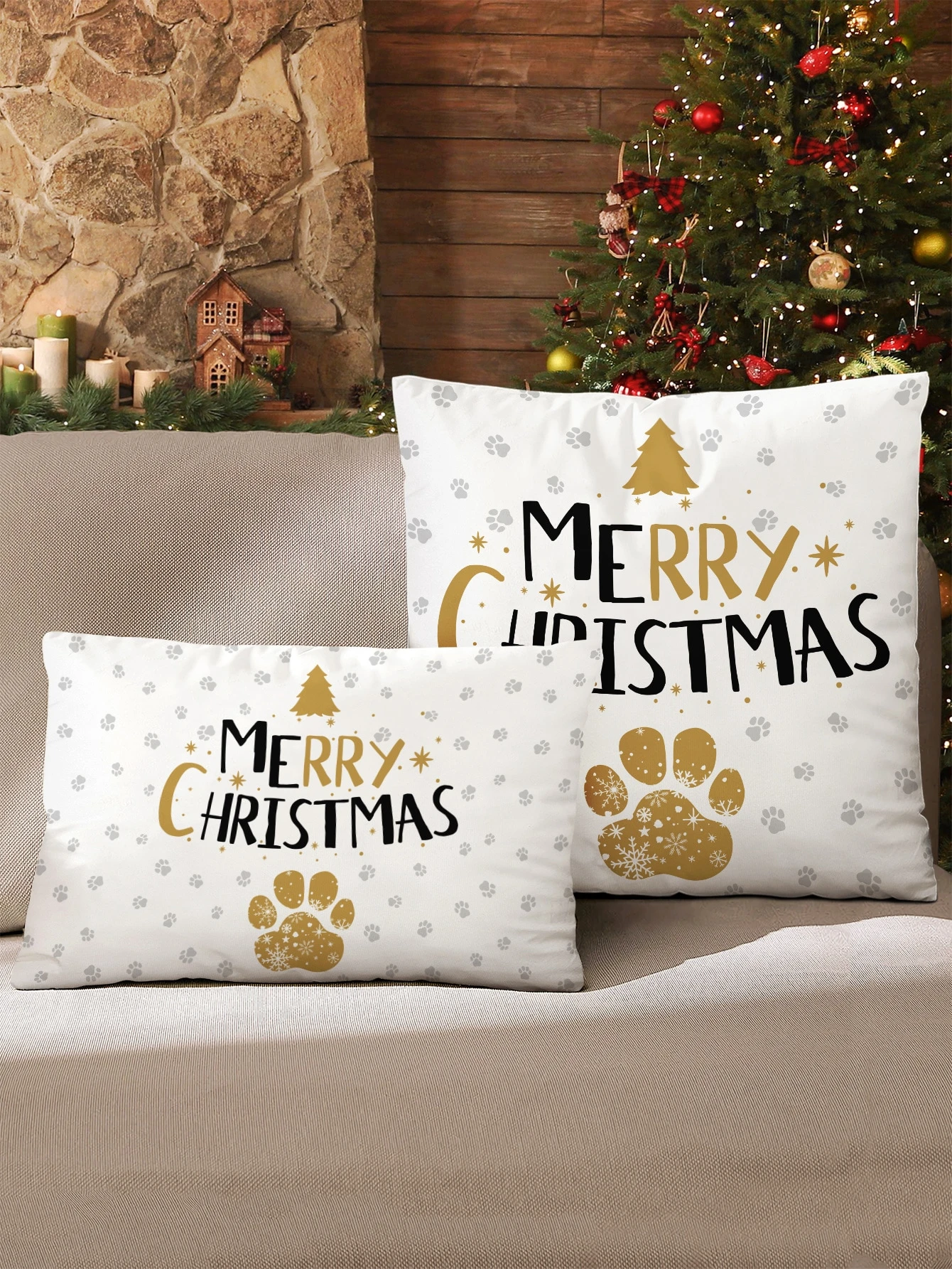 1pc Christmas Paw & Slogan Graphic Cushion Cover Without Filler
