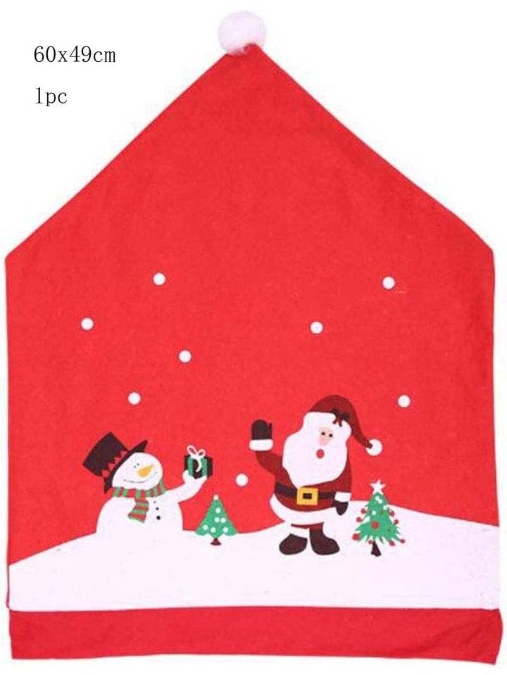 1pc Christmas Snowman & Santa Print Chair Back Cover