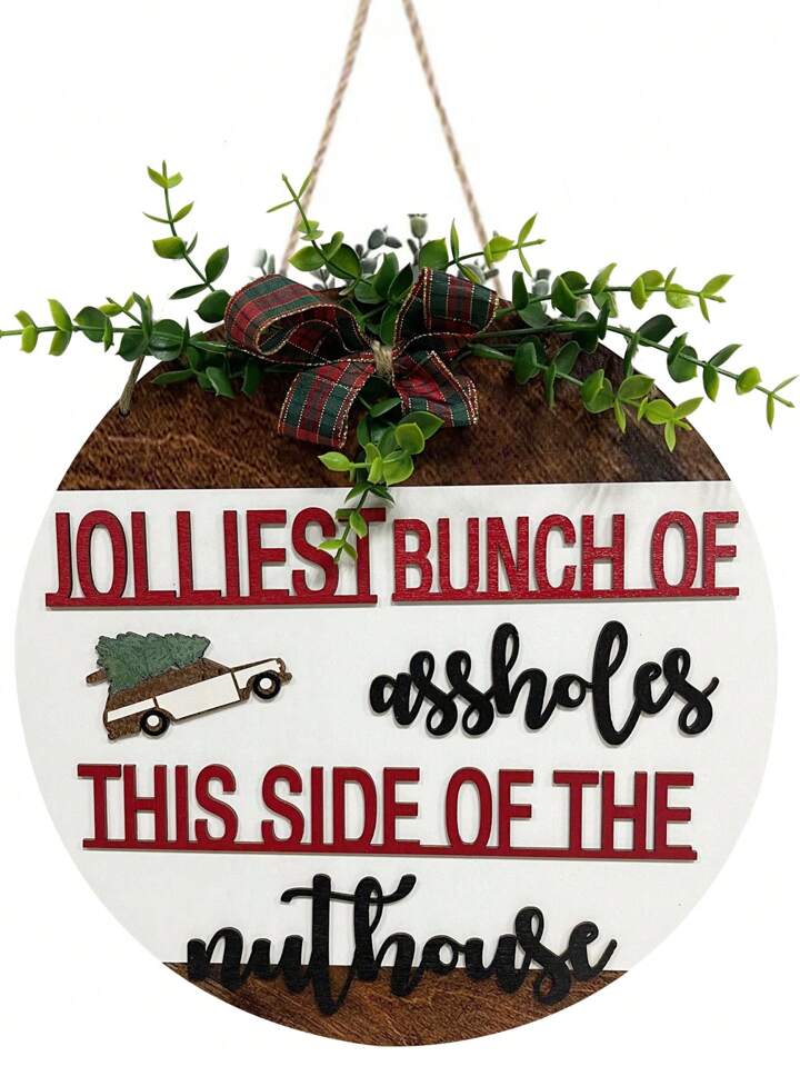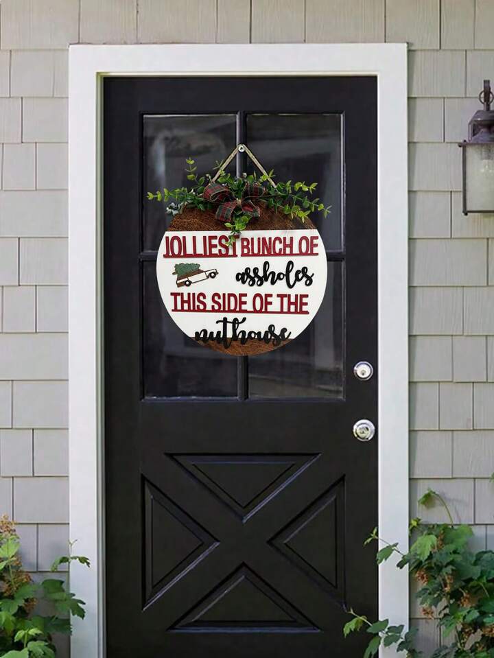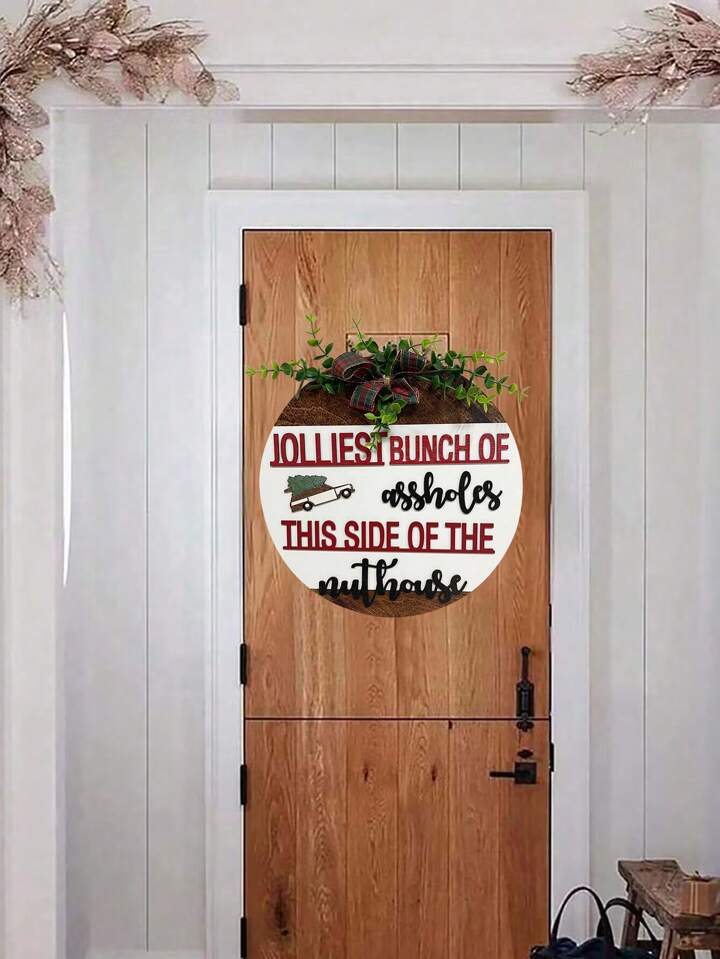 1pc Christmas Wooden Door Sign With Bowknot Decoration