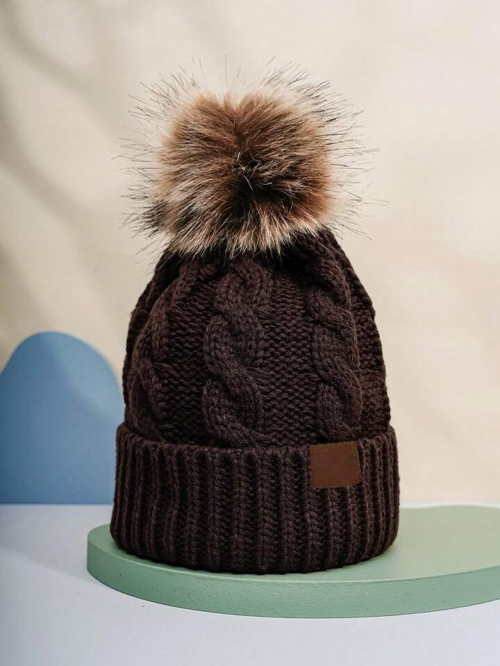 1pc Classic Ribbed Knitted Beanie Unisex Skiing Hat, Y2k Style, With Fur Ball Decoration, Warm, Breathable, Fashionable And Versatile, Suitable For Daily Wear And Outdoor Activities In Autumn And Winter.