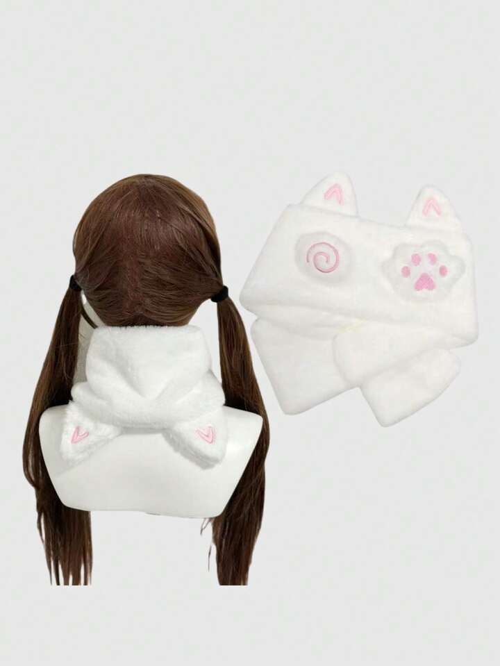 1pc Cute Kawaii Soft Plush Cat Ear Fashion Simple White Scarf, Suitable For Anime, Campus, Casual Wear