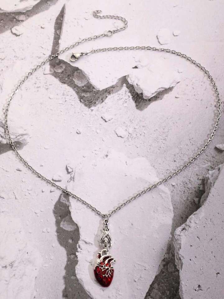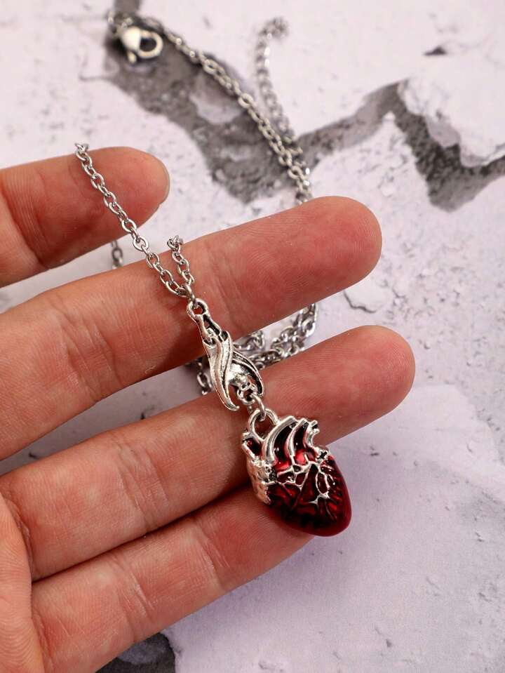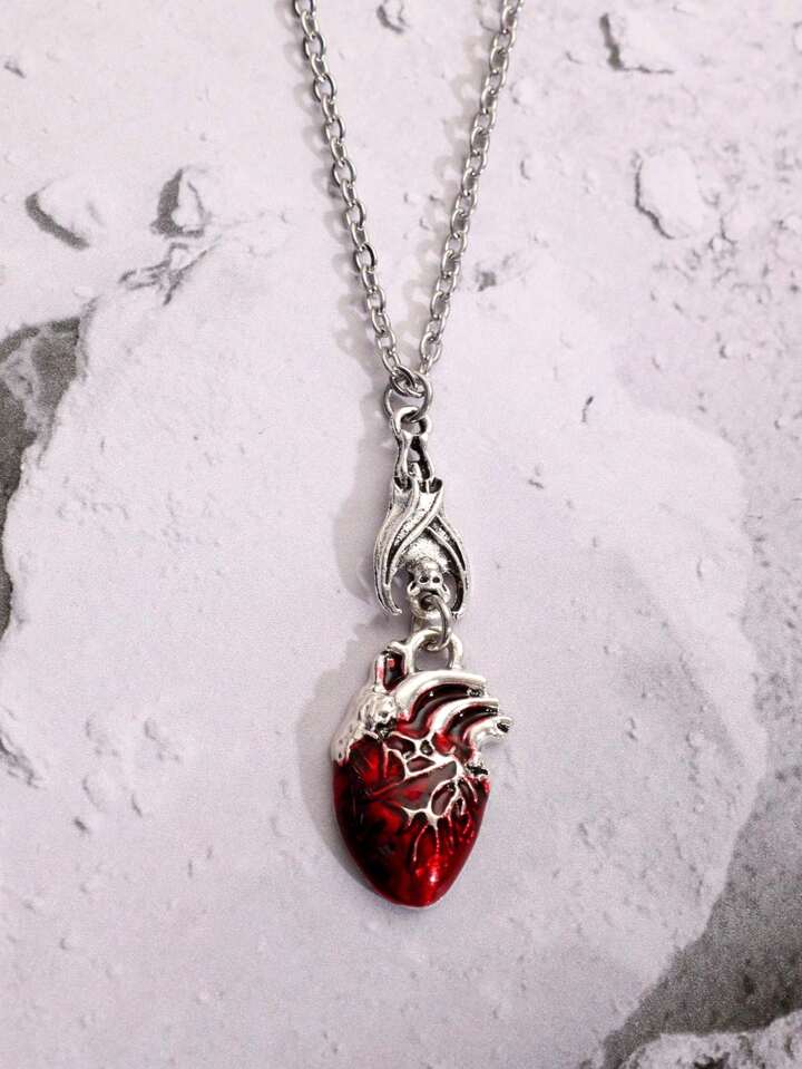 1pc Fashion Zinc Alloy Heart & Bat Pendant Necklace For Women For Daily Decoration