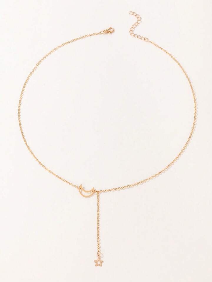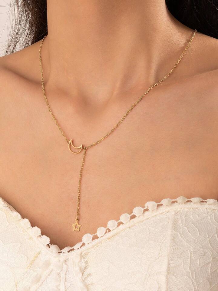 1pc Fashion Zinc Alloy Moon & Star Decor Y Lariat Necklace For Women For Dating Gift