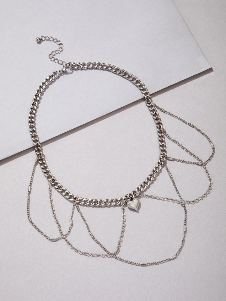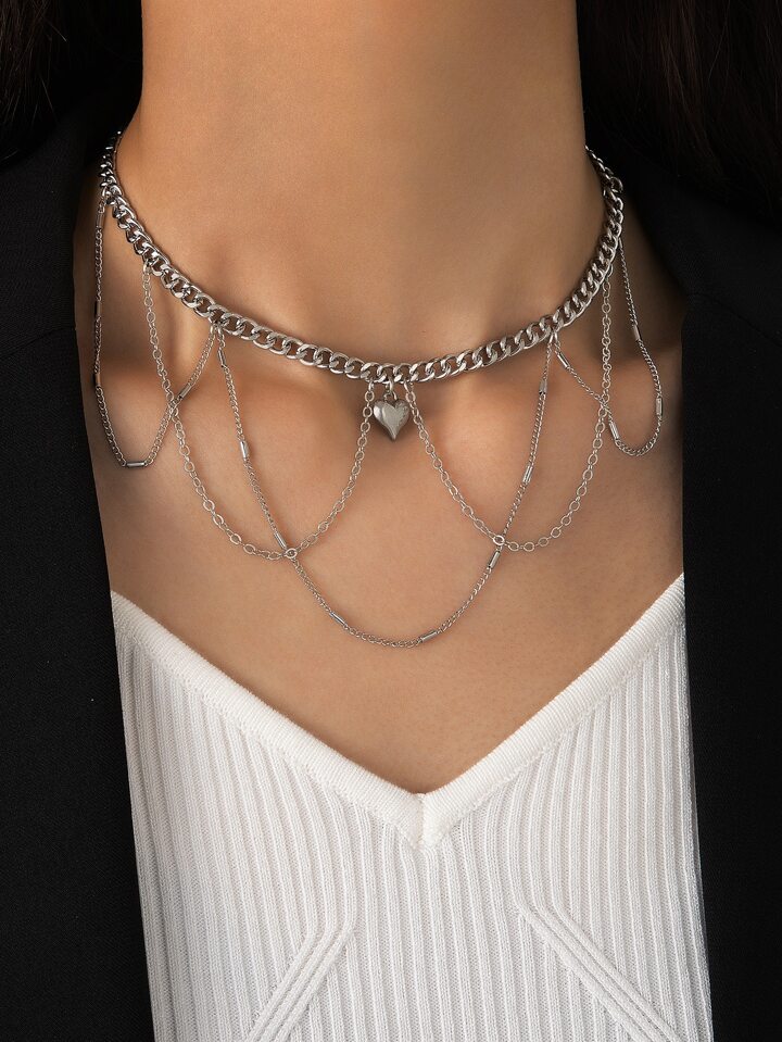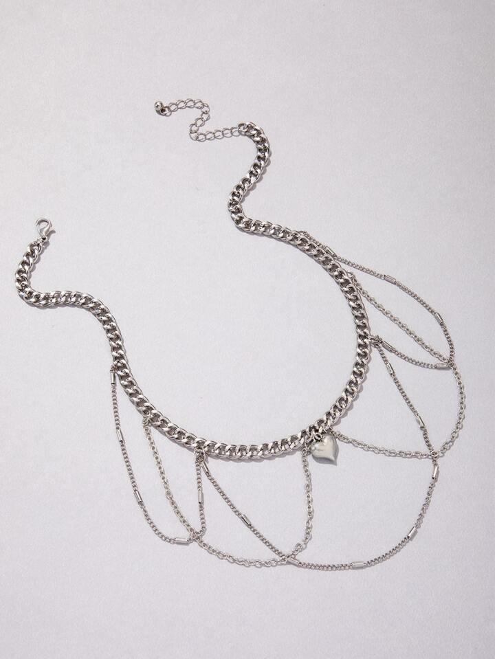 1pc Fashionable Zinc Alloy Heart & Chain Tassel Charm Necklace For Women For Dating Gift