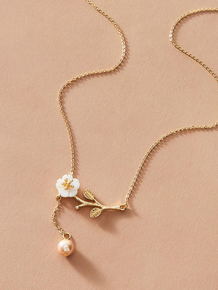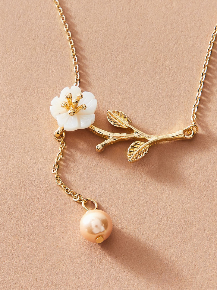 1pc Faux Pearl & Floral Charm Necklace