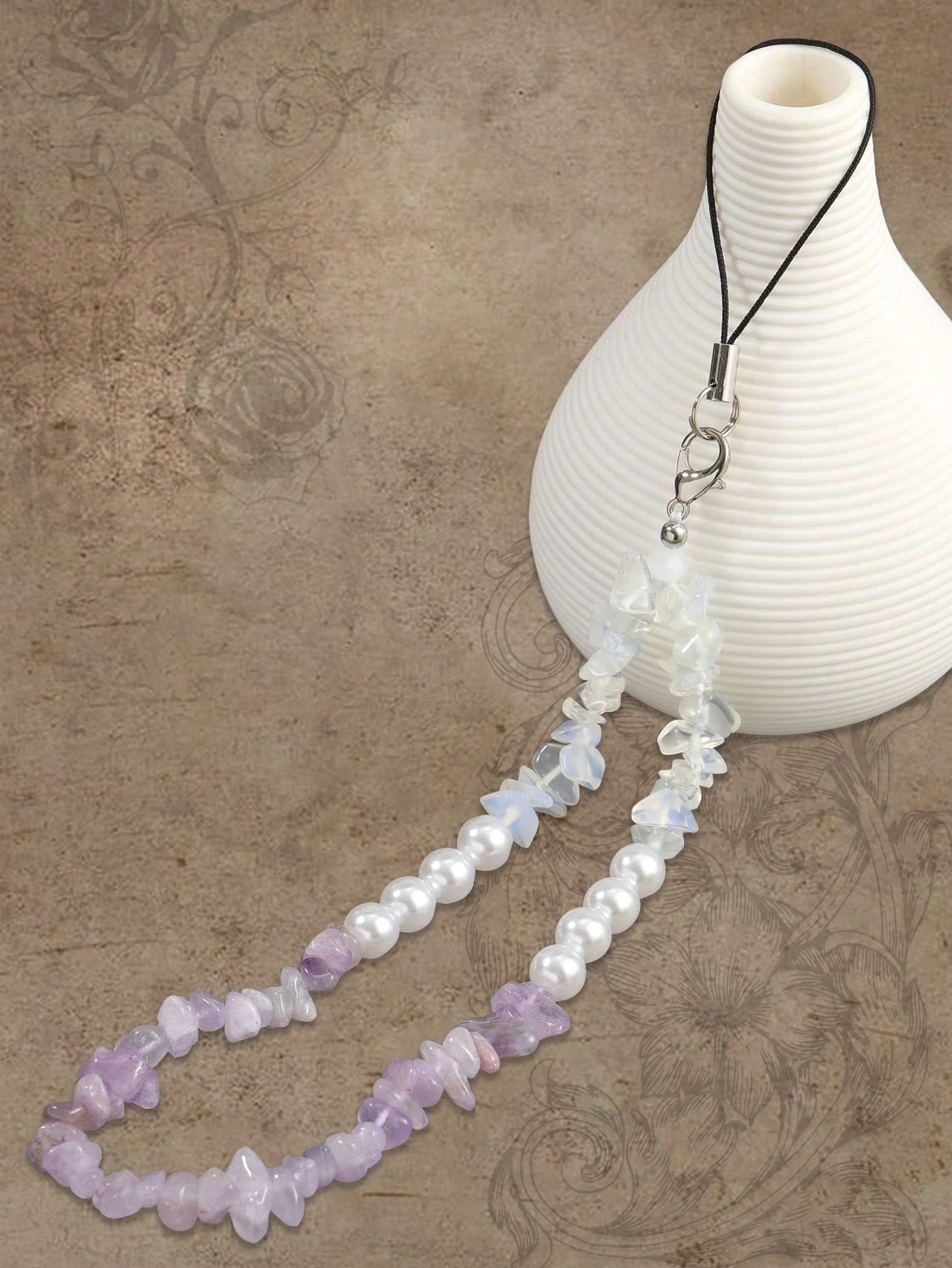 1pc Faux Pearl & Stone Decor Phone Lanyard