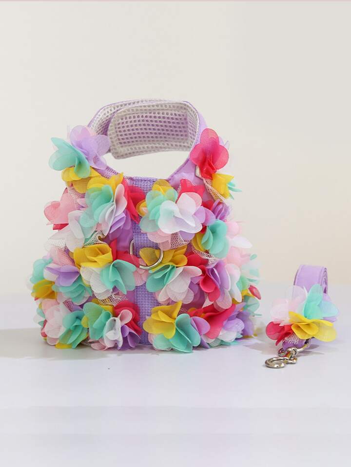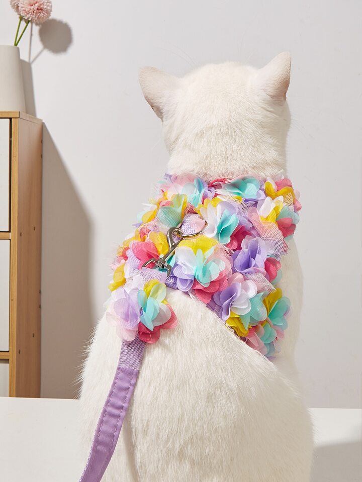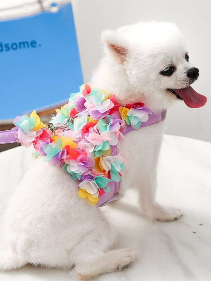 1pc Flower Decor Pet Harness & 1pc Leash