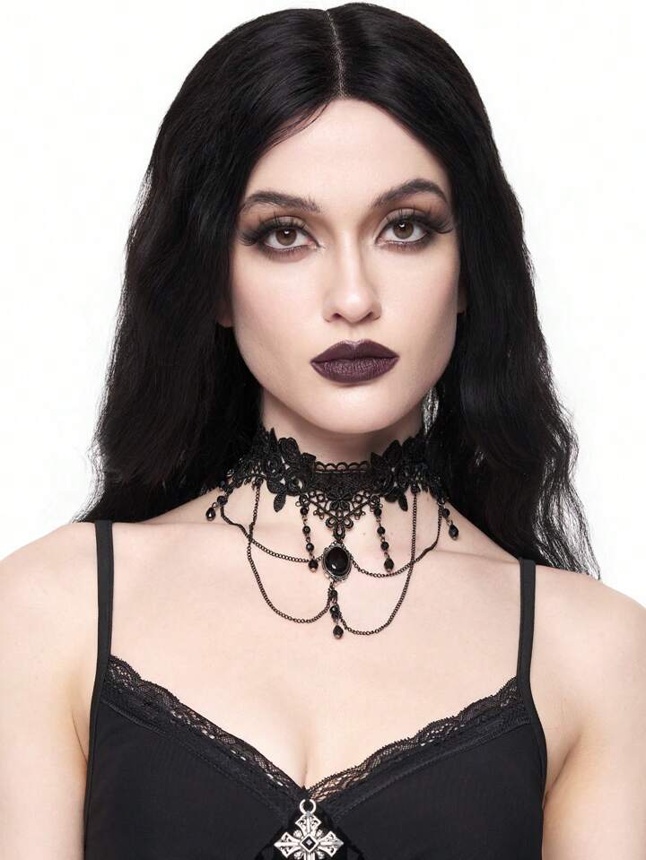 1pc Gothic Dark Jewel Water Drop Tassel Pendant Necklace For Women, Festival Celebration