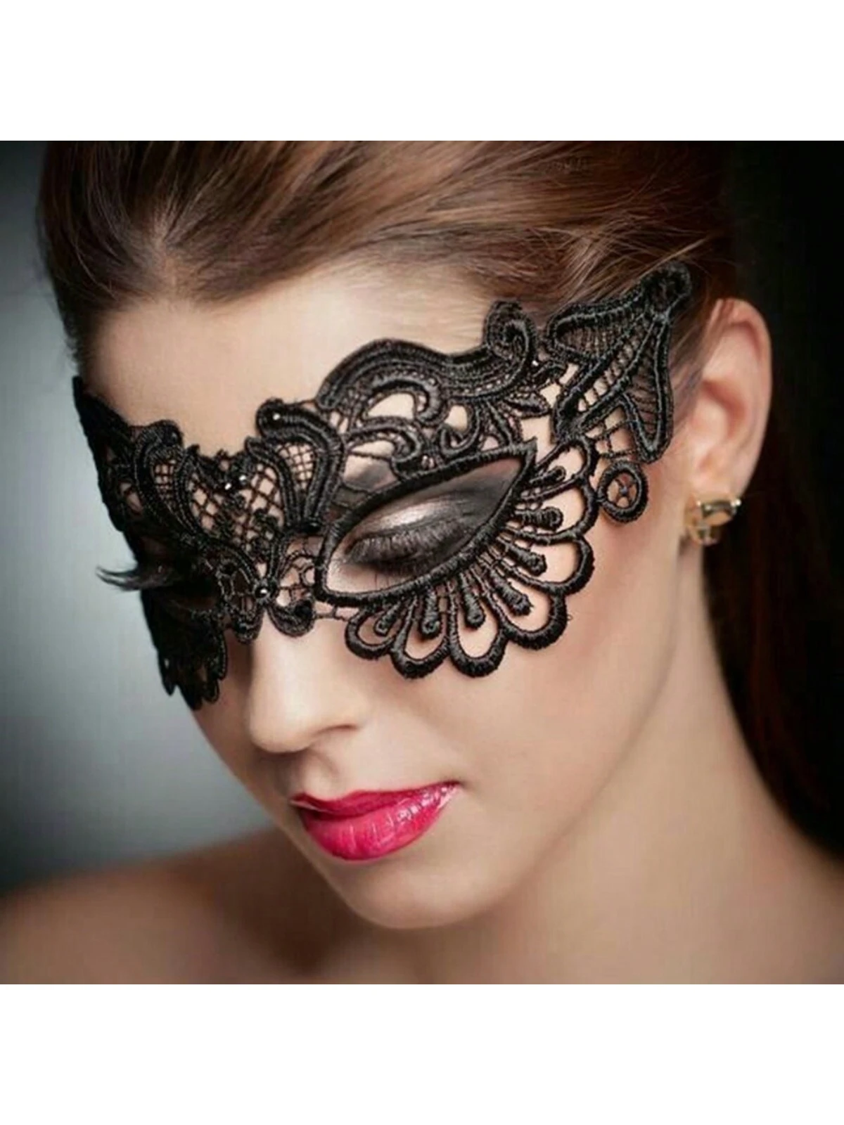 1pc Halloween Adult Princess Party Black Lace Mask With Golden Printing Half-face Sexy Eye Patch For Women