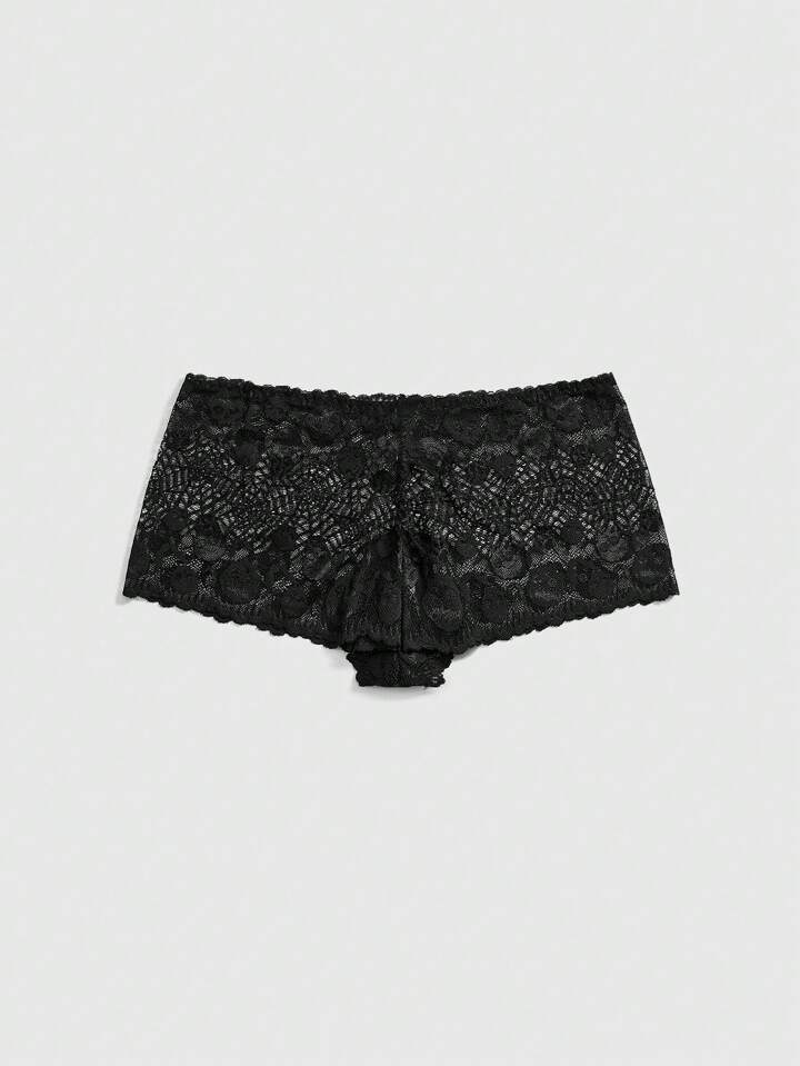 1pc Plus Size Gothic Skull Lace Patchwork Briefs