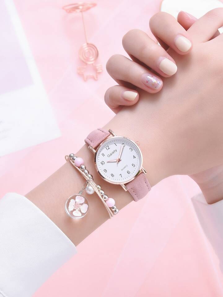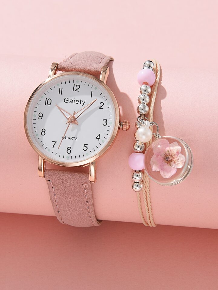 1pc Round Pointer Quartz Watch & 1pc Bracelet