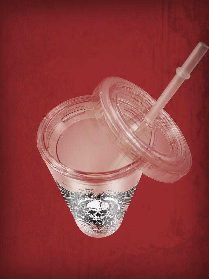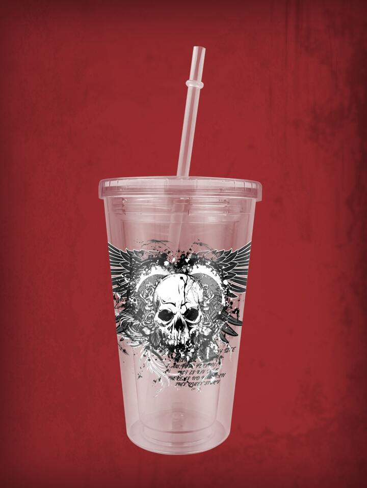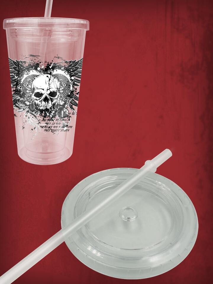 1pc Skeleton & Wing Print Tumbler, Modern PS Heart & Wing Print Bottle With Lid For School, Office